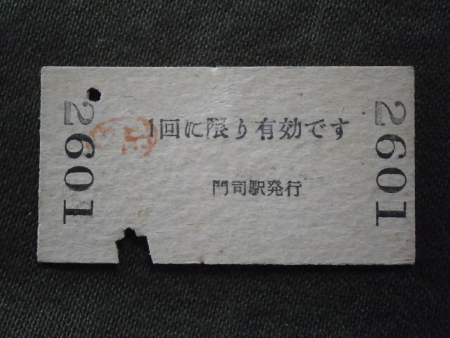 国鉄 門司駅発行、準急行券です。