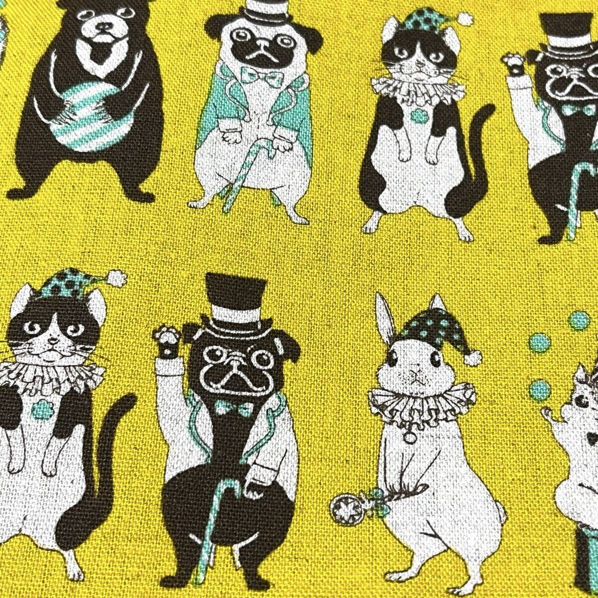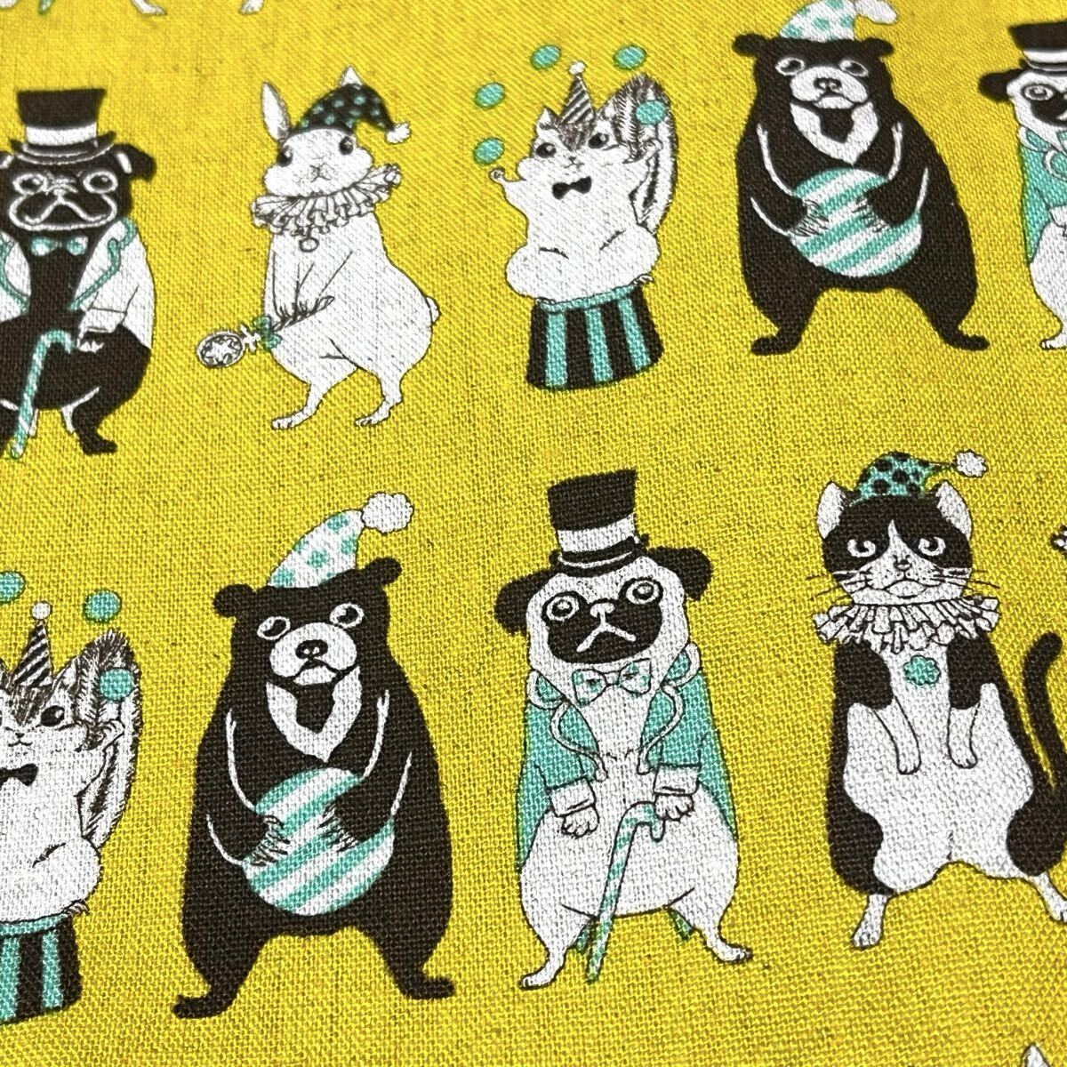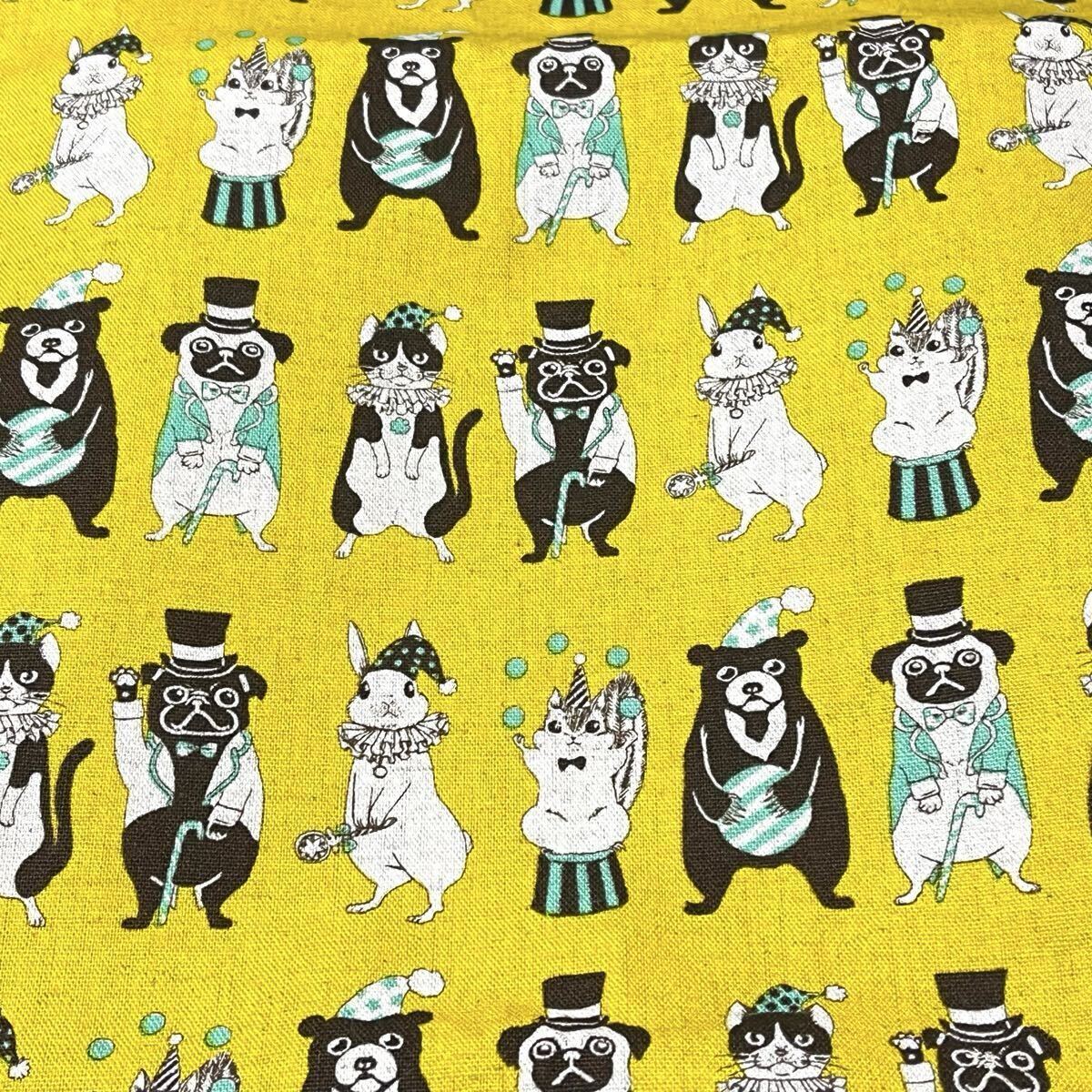 アニマルポップサーカス Shima・shima くろすろ~ど 綿麻キャンバス生地 ハギレ yellow 110㌢