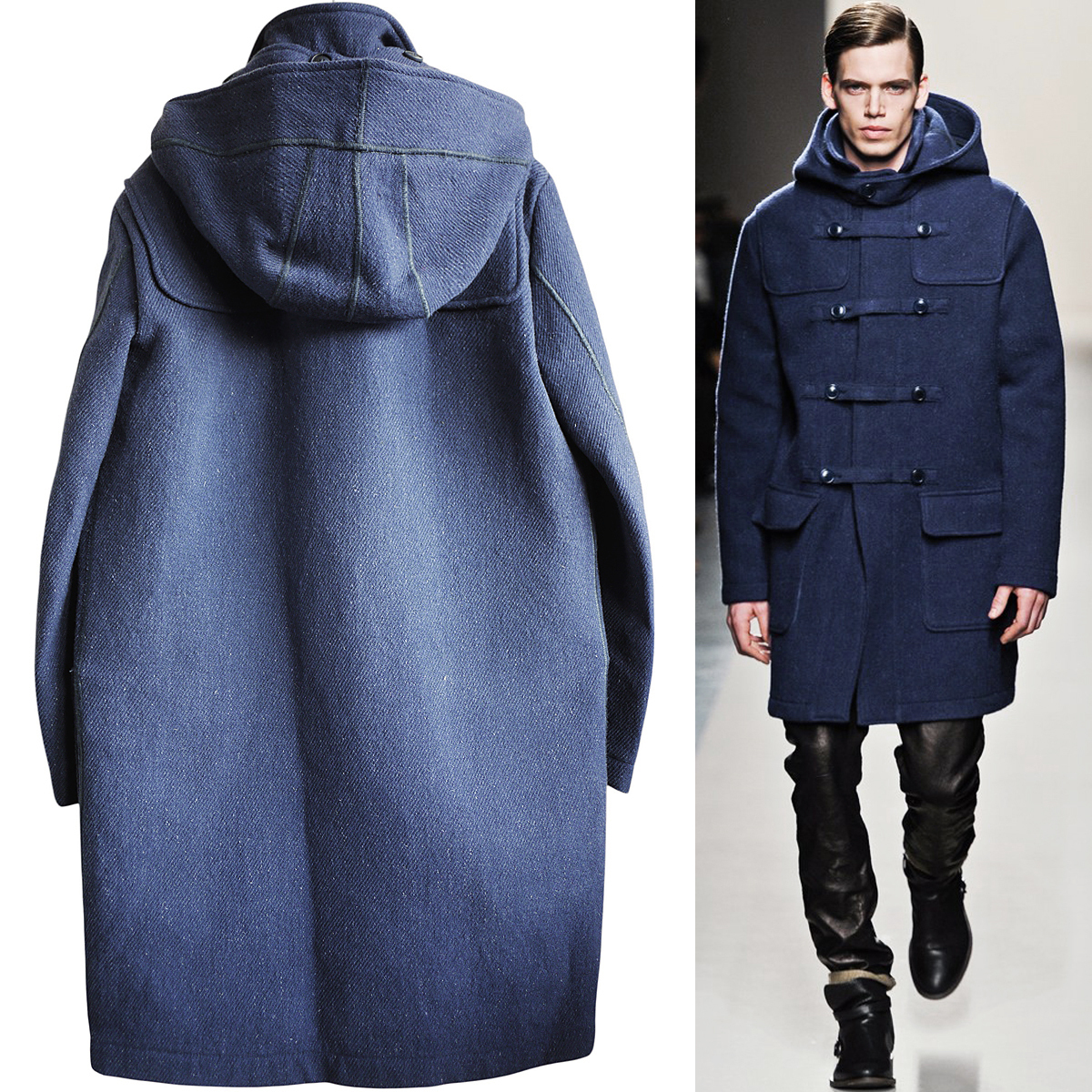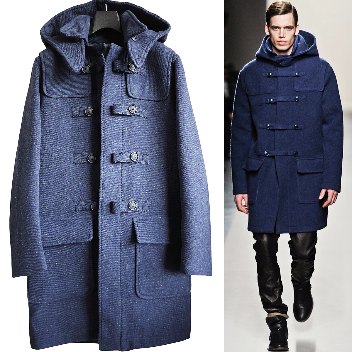ボッテガヴェネタのウールメルトンフーデッドコートでございます。ランウェイ画像同モデルでございます。ボッテガヴェネタらしい大人の雰囲気を醸し出す上品なデザイン、やや身幅にゆとりを持たせた洗練されたボックス型のモダンシルエットの、完成度の高いウィンターコートです。