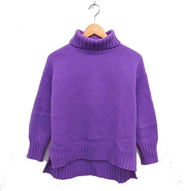 トゥモローランド TOMORROWLAND タートルネック ニット セーター バックロング ウール リブ スリット 長袖 S 紫 パープル /NT29 レディース