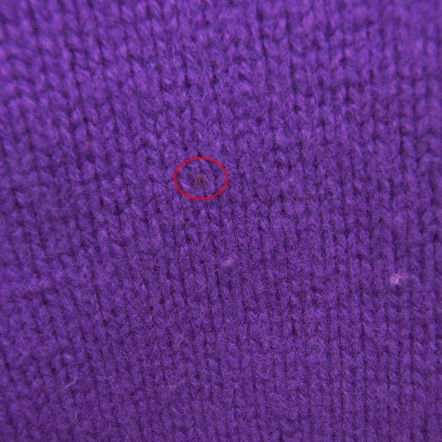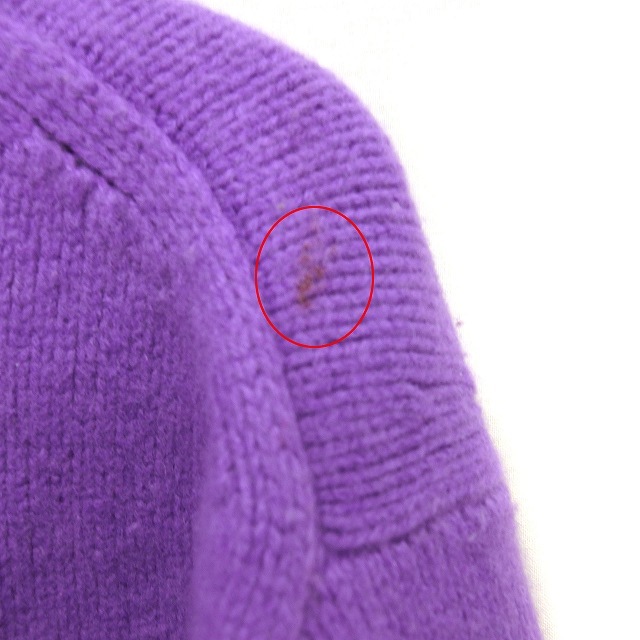 【状態】この商品には下記のようなダメージがあります。 ・前身頃中央に2cm程度の茶色の汚れ ・前身頃中央に8mm程度の茶色の汚れ ・後身頃右肩に8mm程度の茶色の汚れ ・右袖に1mm程度の茶色の汚れ ・全体的に毛玉 ・ネック裏に2cm程度のオレンジの汚れ ※全体的に中古品としての使用感と上記のようなダメージがありますが、通常使用には支障のない商品です。掲載写真や記載内容をご確認いただき、ご理解の上ご購入ください。
