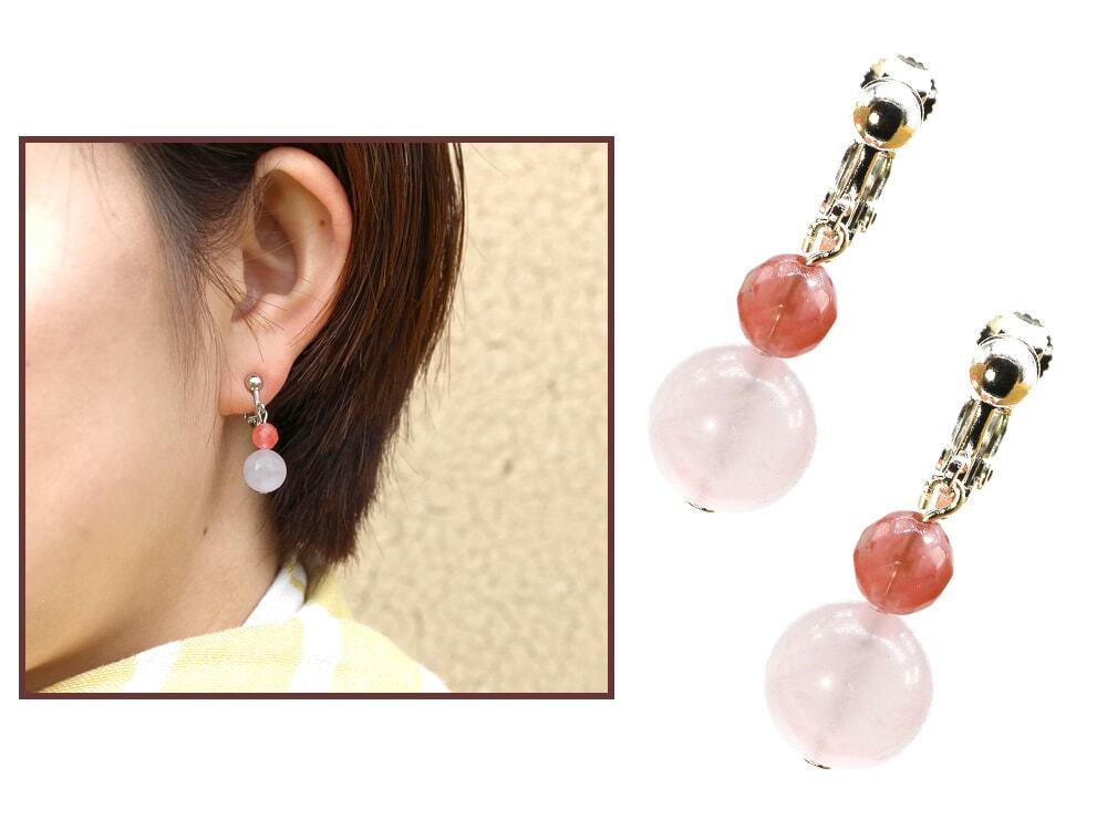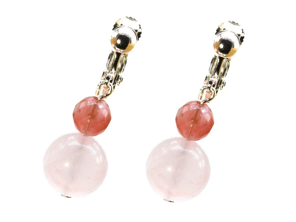 イヤリング パワーストーン 天然石(ローズクォーツ)
