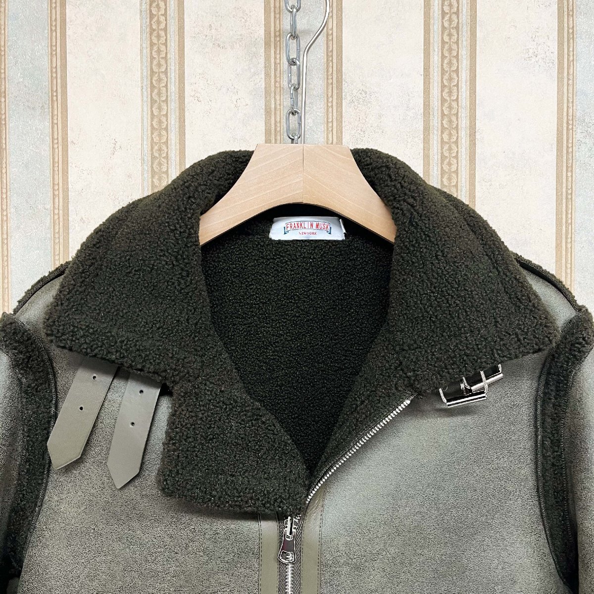 最上級 定価15万 FRANKLIN MUSK・アメリカ・ニューヨーク発 レザージャケット 羊革 本革 厚手 保温 裏起毛 リバーシブル ボアコート 革ジャン 秋冬 サイズ2