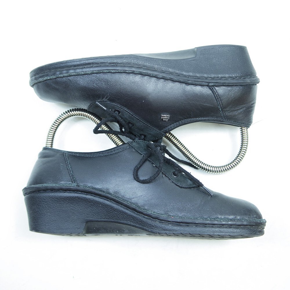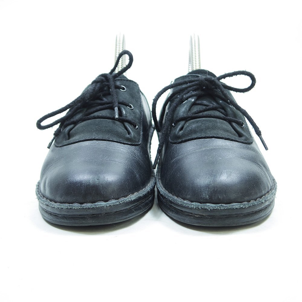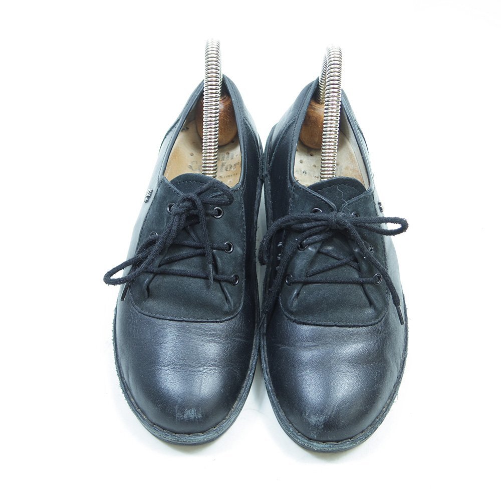 | 実寸サイズ | アウトソール:約24cm(つま先~カカトまでの直線) インソール:約23.5cm(つま先~カカトまでの直線(※入っているインソール(中敷)の長さではございません)) ウィズ幅(ワイズ):約9cm(アウトソール最大横幅) 表記だと3-1/2ですが23.5cmくらいのサイズ感になります。 (※実寸も参考にしてみてください。) |