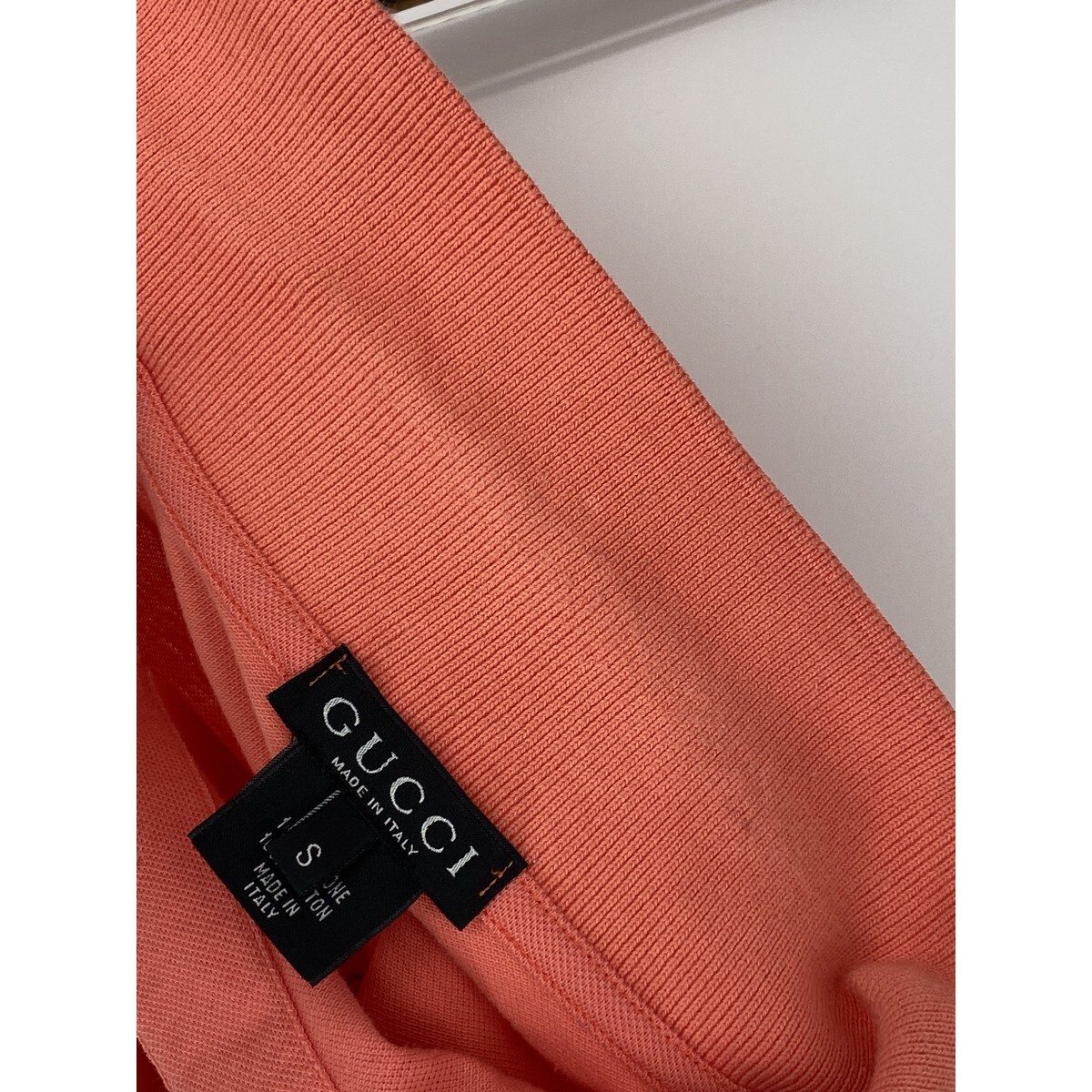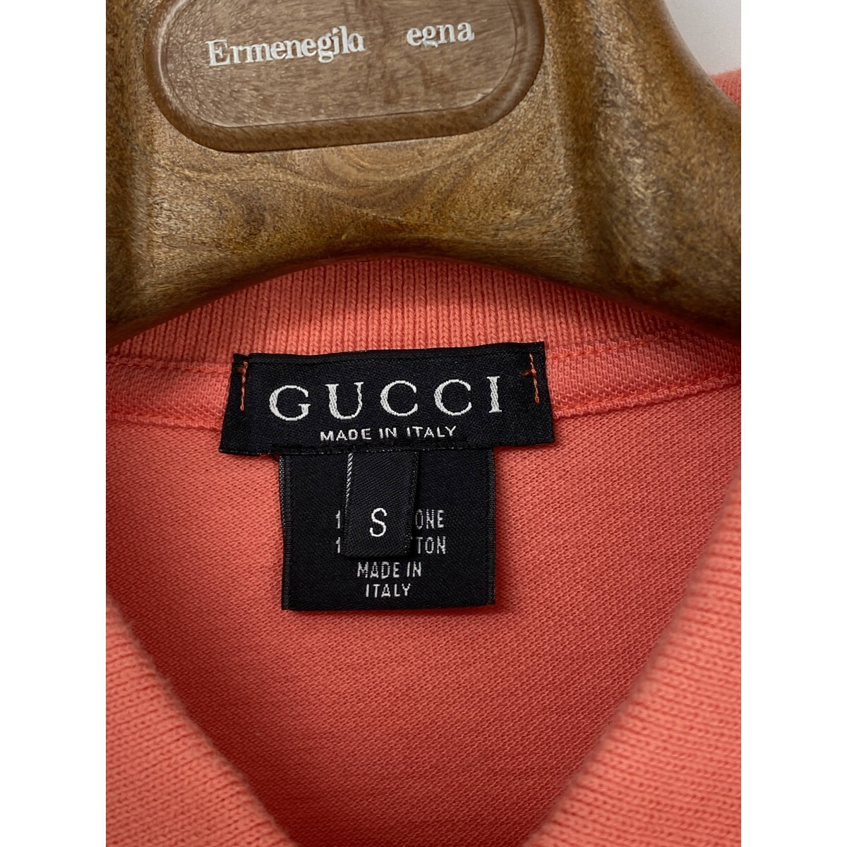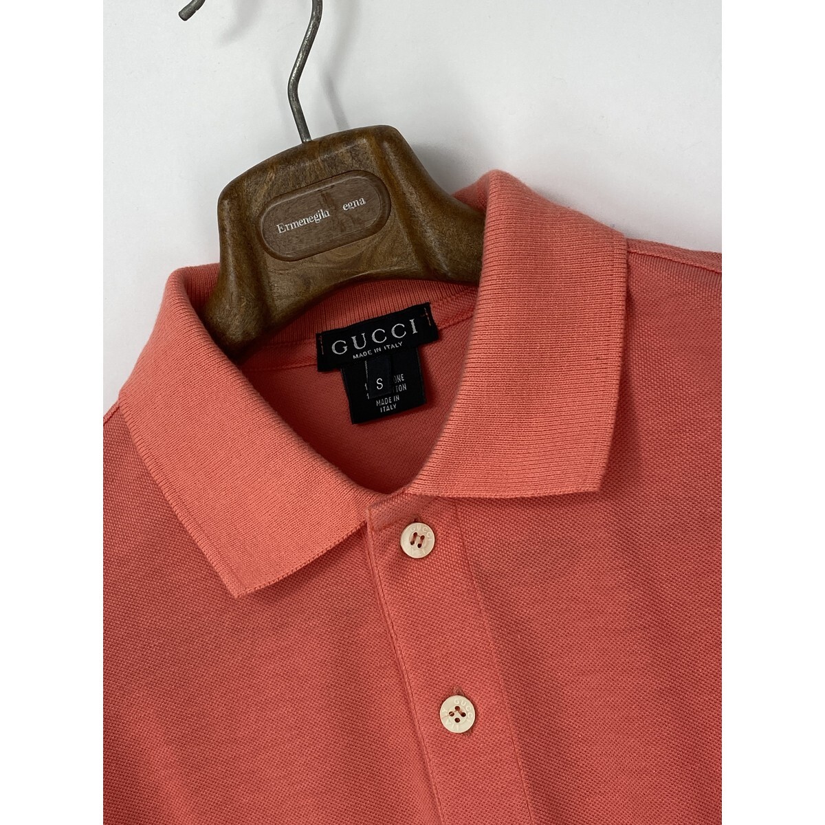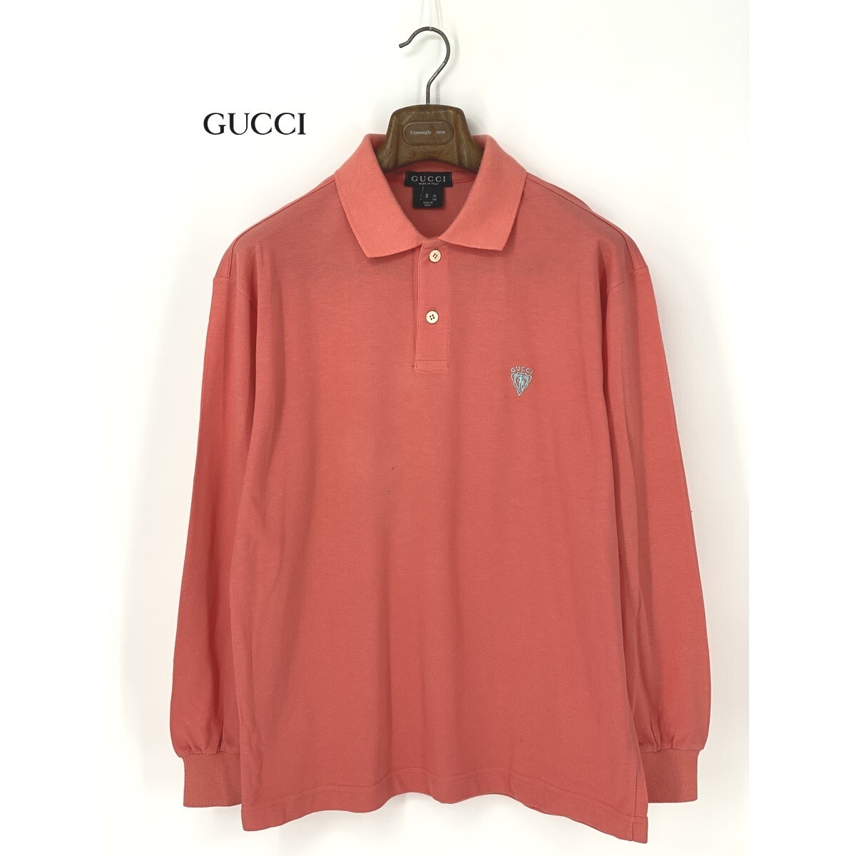 A8845/春夏 GUCCI グッチ コットン100% 長袖 ヘンリーネック 胸ロゴ刺繍 襟付き ロンT Tシャツ カットソー S ピンク イタリア製 メンズ