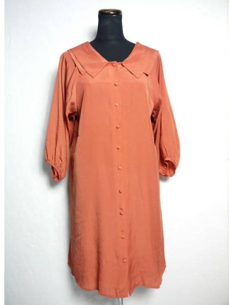 サイズ表記ナシで、実測で、肩幅ラグラン、身幅48cm、着丈(背中側の中央の衿元~裾)77cmです。