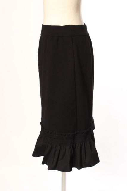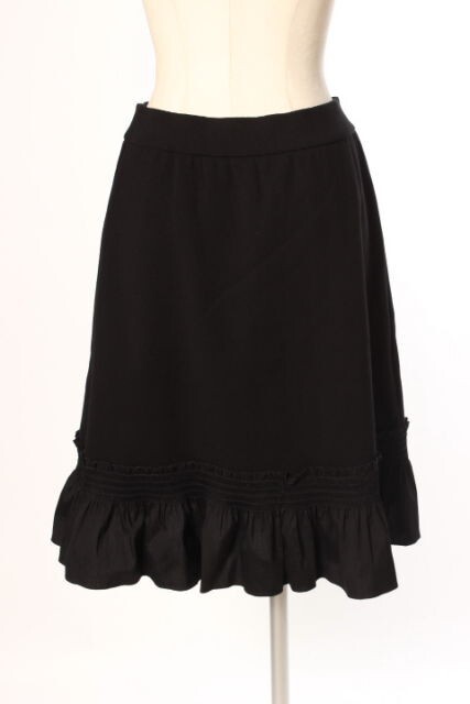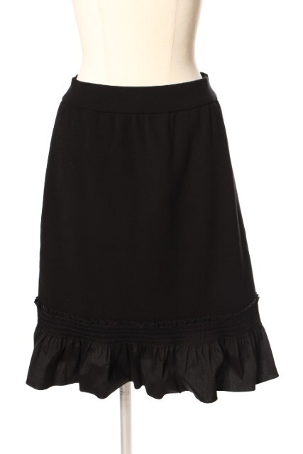 フォクシー FOXEY スカート ニット フレア ひざ丈 フリル 38 黒 ブラック 36873 /hn0502 レディース