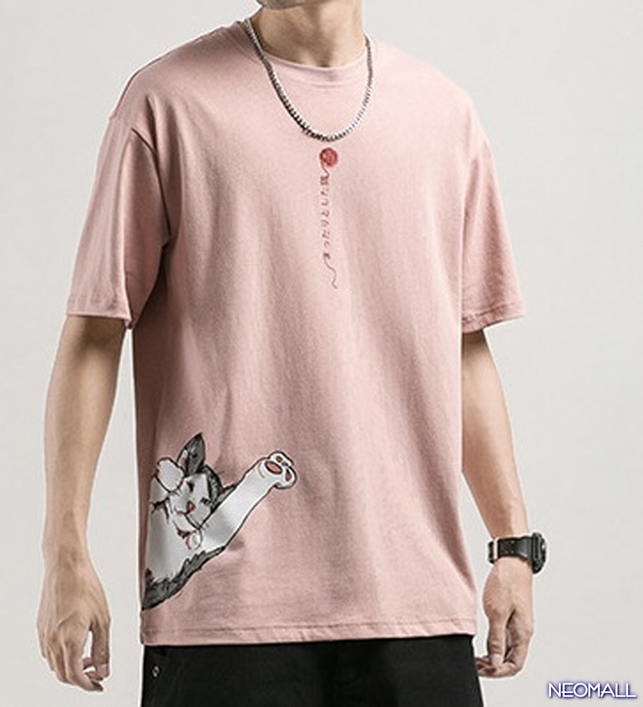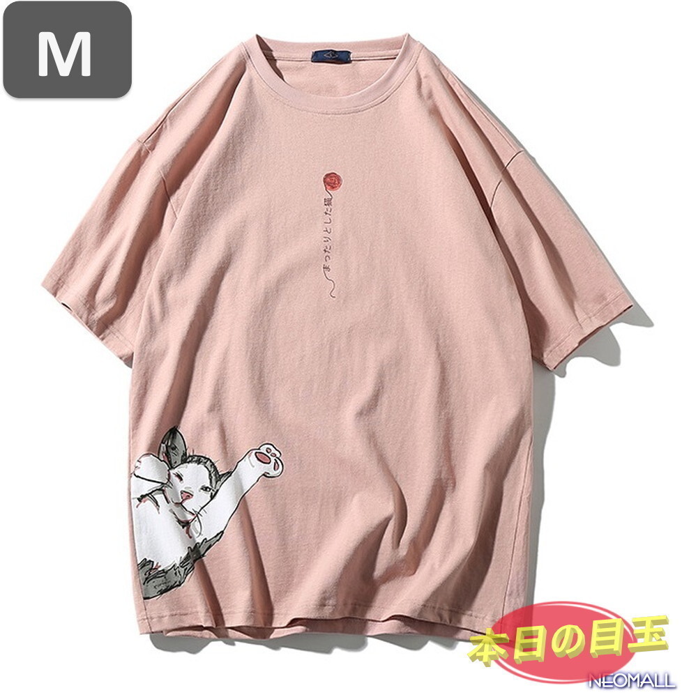 本日のお買得 ☆ 丸首 半袖 Tシャツ【466】 ピンク Mサイズ トップス シャツ シンプル イラスト デザイン 春夏