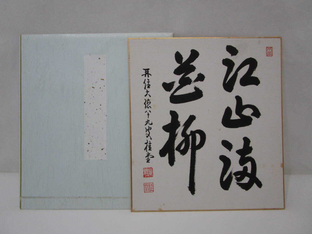 中古色紙! 大徳寺 住持 第509世 (再住大徳) 瑞峯院  吉口桂堂師筆 「江山満花柳」(こうざんに かりゅう みつ)の 五字色紙です。 幅24cm 縦27cm  時代ヤケ有り。昭和期の年代物です。 タトウ紙入。どうぞ宜しく。