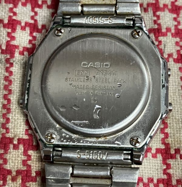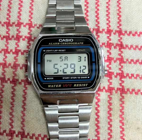【O374】CASIO カシオ A164WA-1QJH 腕時計 動作品 チープカシオ チーカシ デジタル メタルバンド シルバー 防水 現状品
