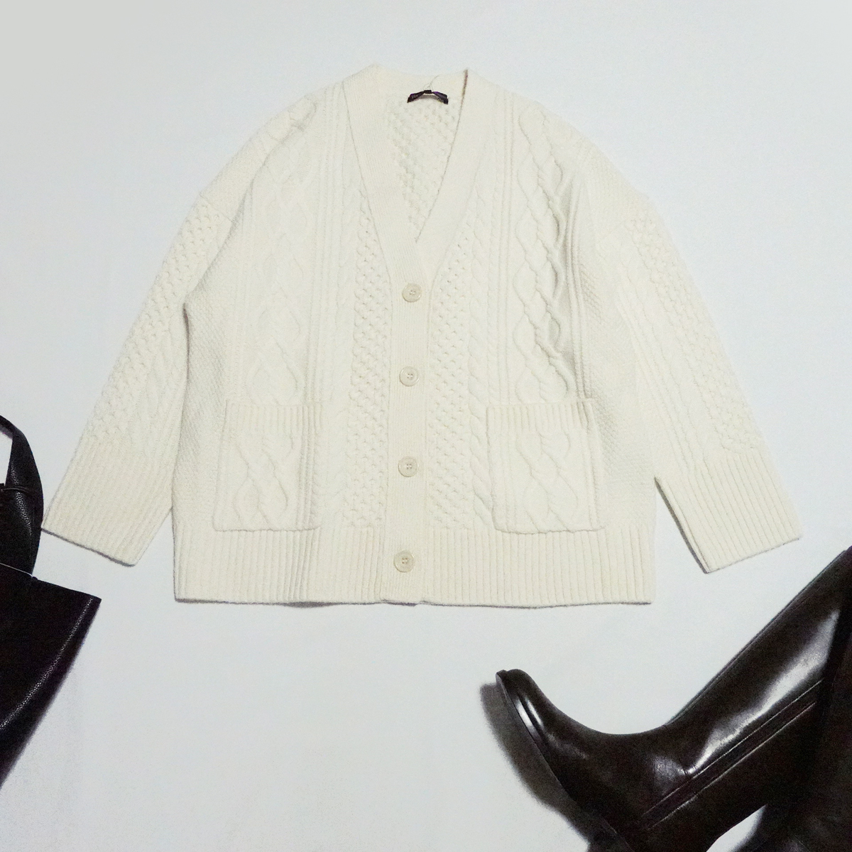 マガジン掲載杏さん着【洗える】ウールカシミヤアランパターンカーディガン。