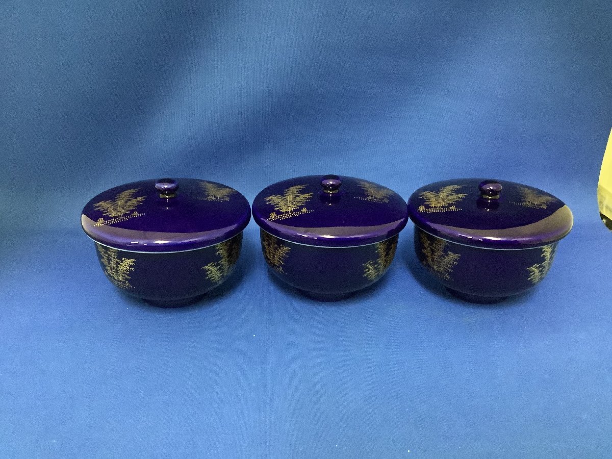 深川製磁 竹林 蓋付き湯呑3客セット(現状品)になります。