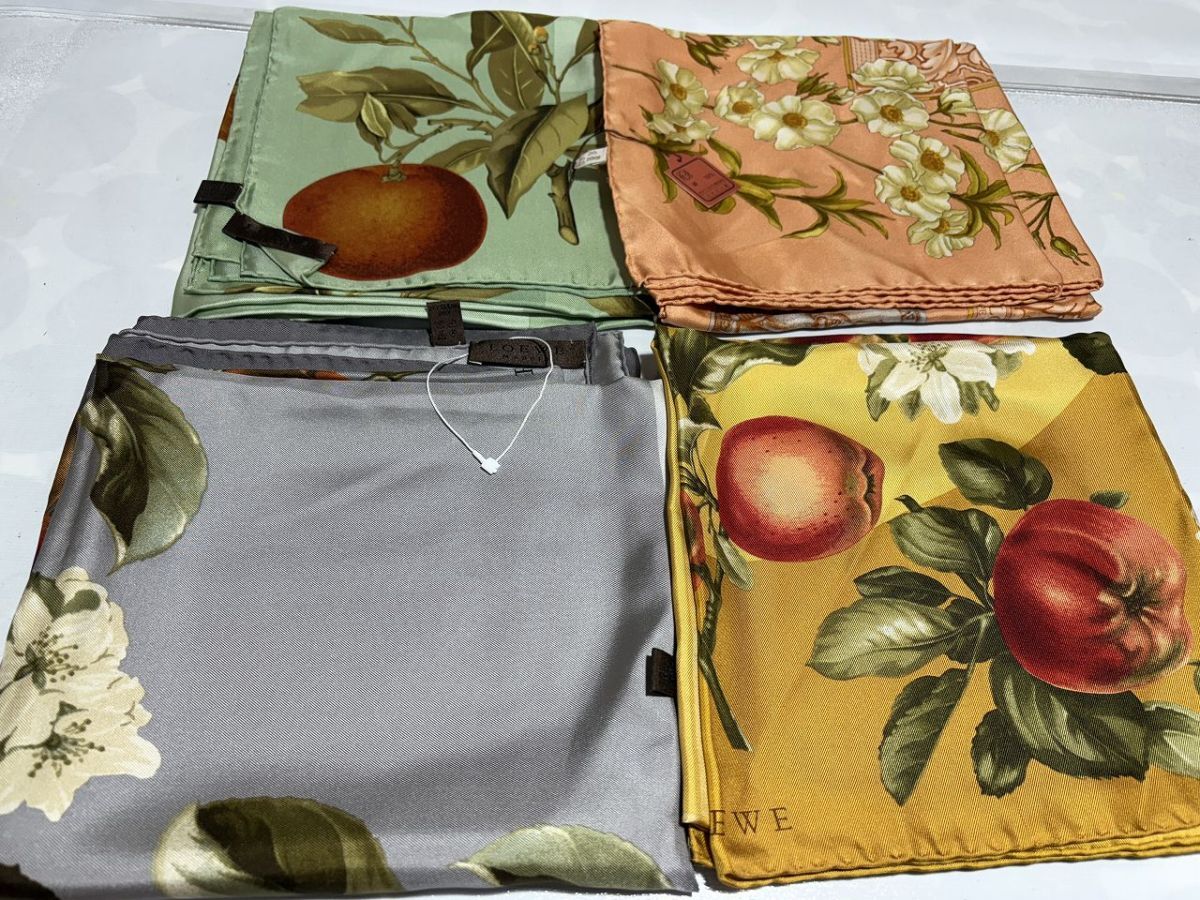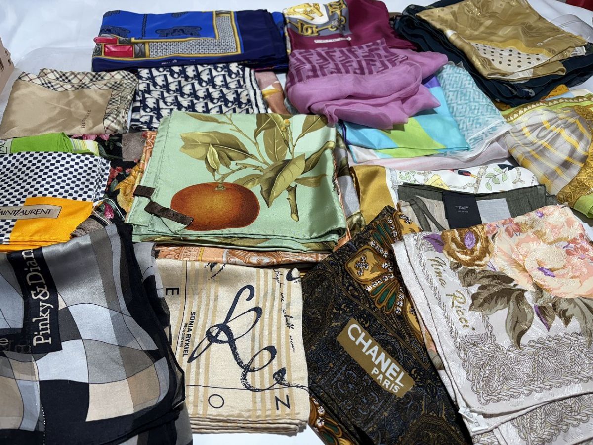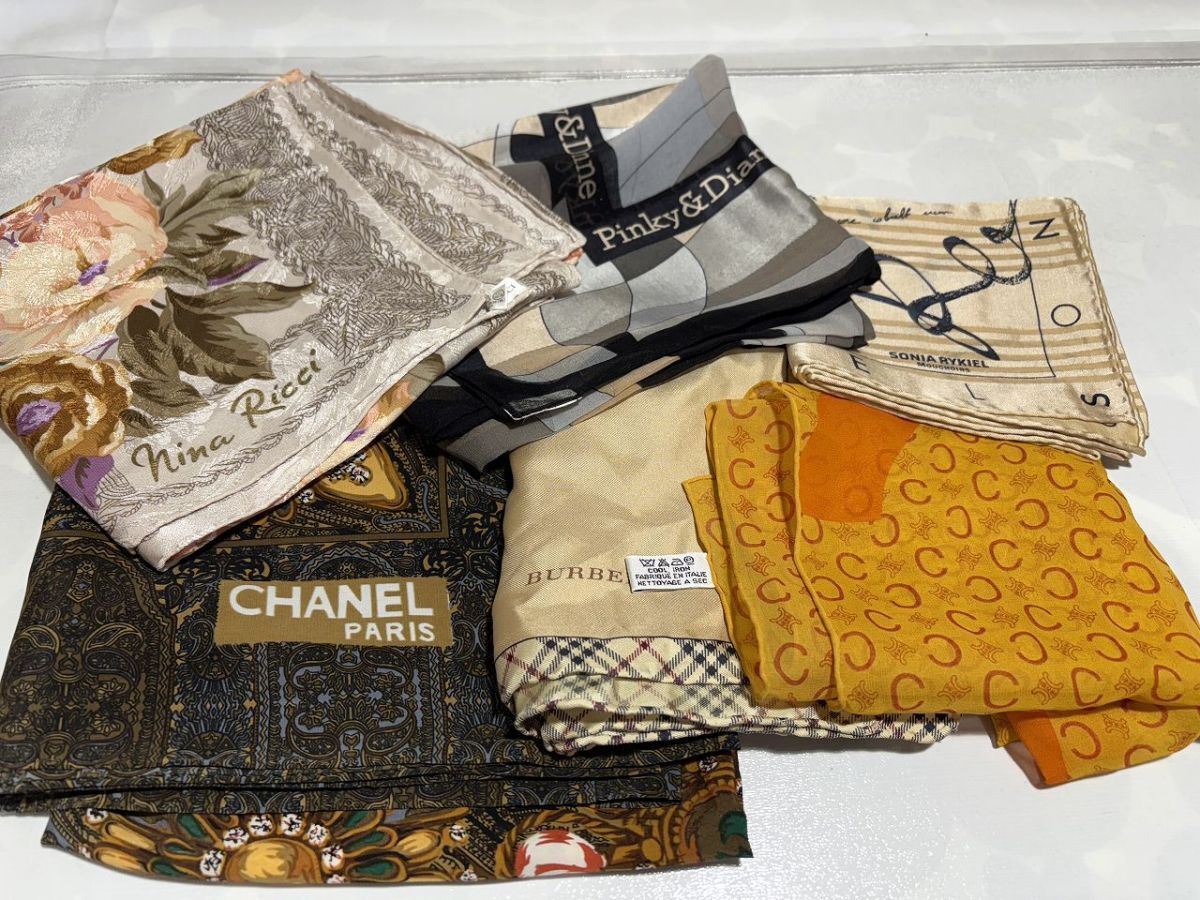 ■商品名スカーフまとめ 大判・中判・小判 29枚■内容{サイズ(約)/(画像参照/素人採寸)}確認しましたが《シミ》など汚れの可能性ありLOEWE/Dior/FENDI/GUCCI/CHANEL/BURBERRY/LANCEL/LANVIN/イヴサンローラン/ミラ ショーン/セリーヌ/ソニア/ニナリッチ・現在スマートフォンでは文章の表示が異常になる場合がございます。不明点などございました際はご質問ください。・梱包サイズ、送料は下部の発送詳細欄に記載がございます。ご参照のほど宜しくお願い致します。■詳細・長期保管品。・状態→やや汚れあり・大きさは画像を参照ください。・新品同様をお求めの方は購入を御遠慮願います。・画像の物が全てになります。・画像を参照の上ご判断宜しくお願い致します。・専門知識が無い為詳しいことはわかりかねます。・長期保管で保管期間/購入日は不明の為、品質保証はできかねます。・ご理解ご了承いただける方のみのご入札をお願い致します。■同梱について複数落札商品の同梱についてはヤフオク機能の《まとめて取引》よりご依頼ください。なお、ヤフオクの規定により落札後72時間以内の商品が同梱の対象になります。また、評価が低い落札者様につきましても《まとめて取引》がご利用頂けません。詳しくは以下にて、宜しくお願い致します。【まとめて取引の手順】【まとめて取引の条件】・割れ物など壊れやすい物は、破損防止の観点から同梱はできませんが、落札後《まとめて取引》にてご対応いただけた場合は複数個口にて発送致します。送料は個別対応より割引になります。・個別取引にて同梱をご希望の場合は必ず送料連絡前に取引ナビにてご連絡いただけますようお願い申しあげます。