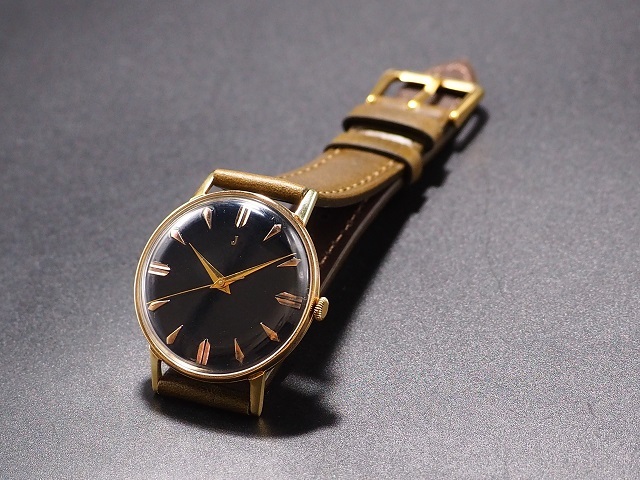 ジュベニア JUVENIA ブラック文字盤 ゴールドケース 手巻き アンティーク 稼働確認済み  新品ベルト