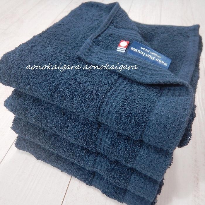 新品◆今治タオル◆甘撚り◆ふわふわ◆フェイスタオル4枚◆ネイビー系
