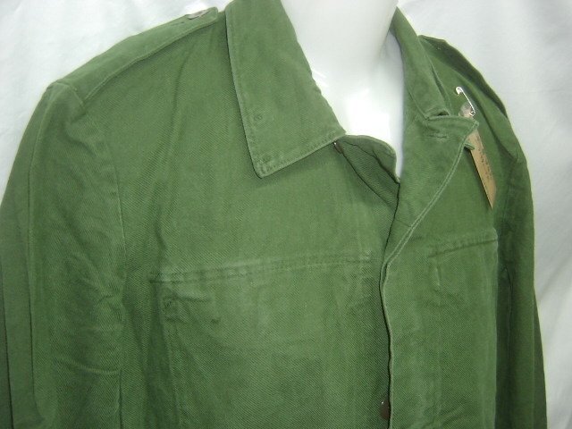 スウェーデン軍が1959年に採用したユーティリティージャケットです。 コットンのみが使用されているので、経年変化であたりなどが出てより味のある雰囲気のユーズドです。 ポケットやボタンなどが作業中引っかからないように内ポケットや比翼仕様になっていたりと機能性を重視したデザインになっています。 素材は肉厚の綿100%。 サイズ44で着丈74、身幅60、肩幅49、袖60cm程度です。 沖縄離島を除く全国500円でお送りいたします、落札価格にプラスでお願いいたします。