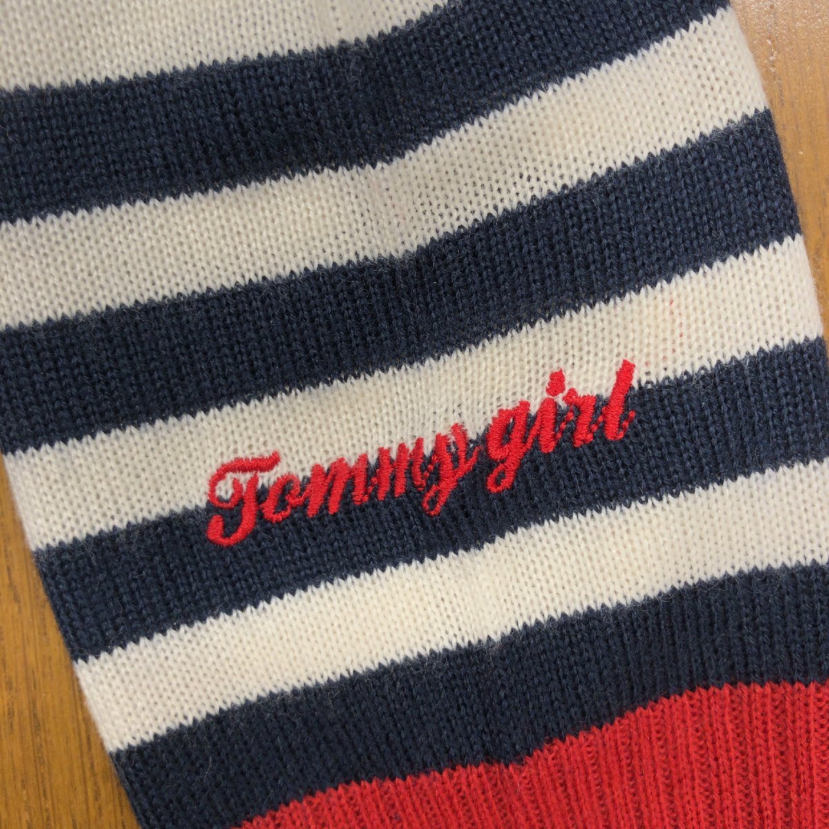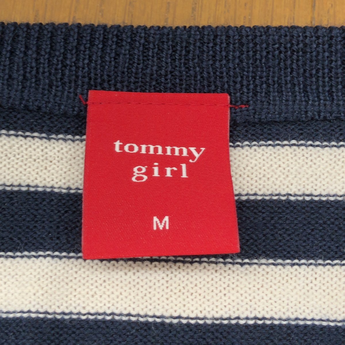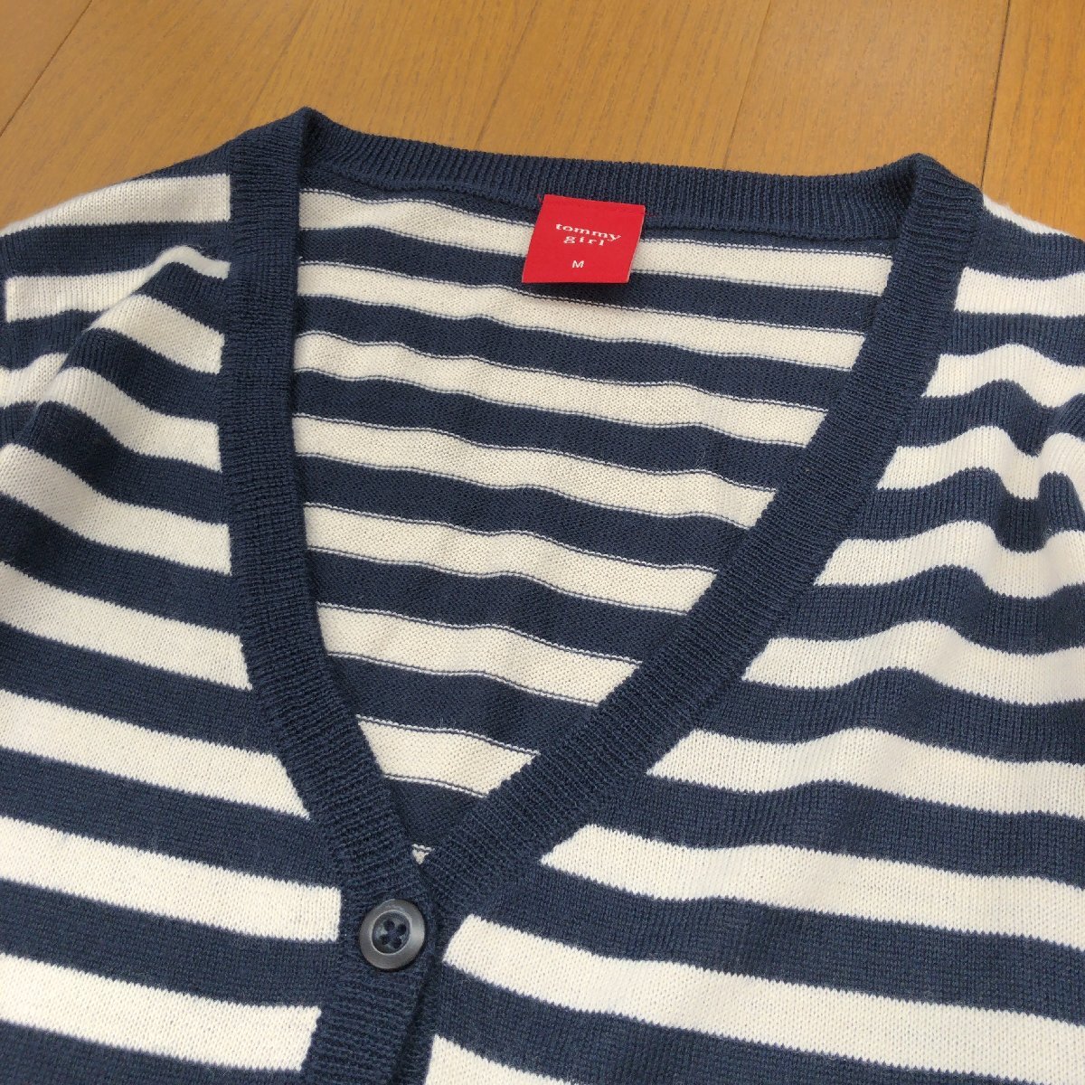 美品 TOMMY GIRL トミーガール ウールブレンド ボーダー ニット カーディガン M 羽織り ポイントロゴ刺繍 レディース トミーヒルフィガー