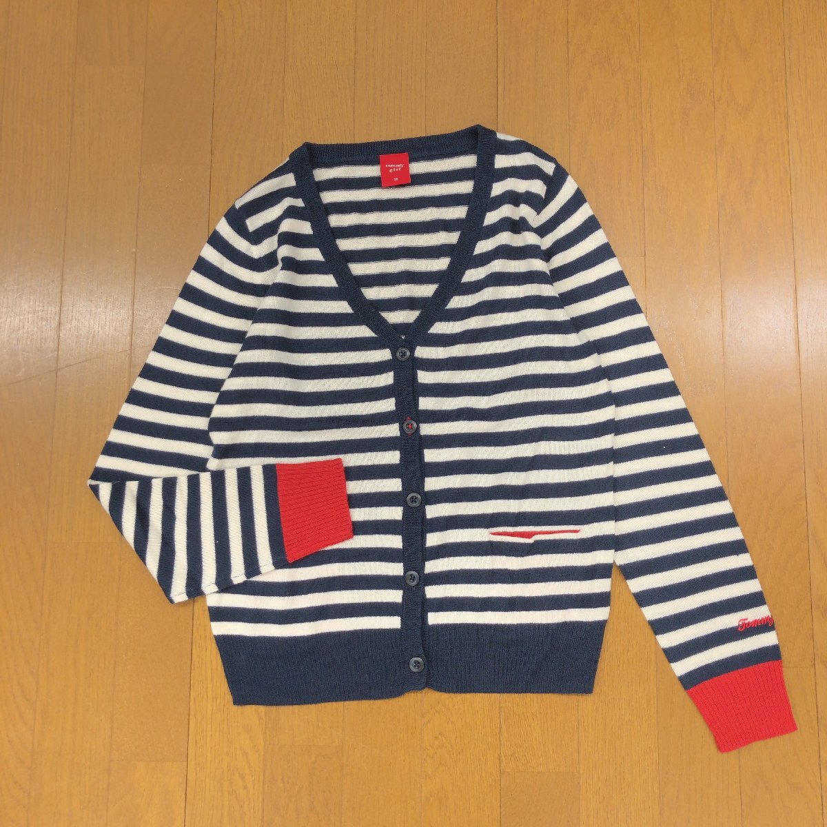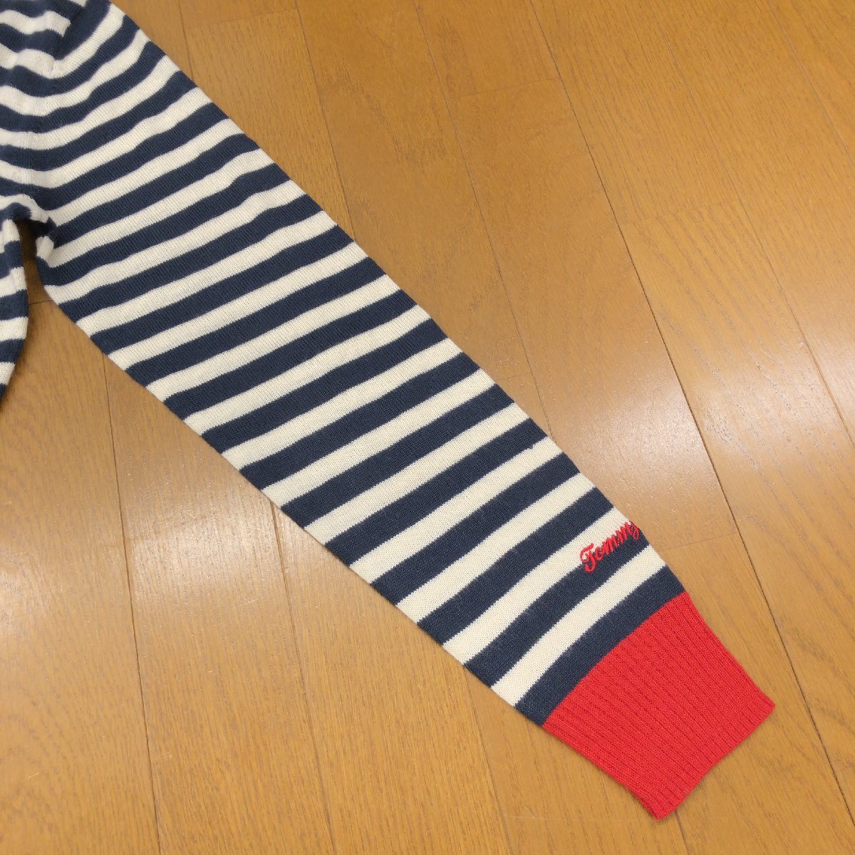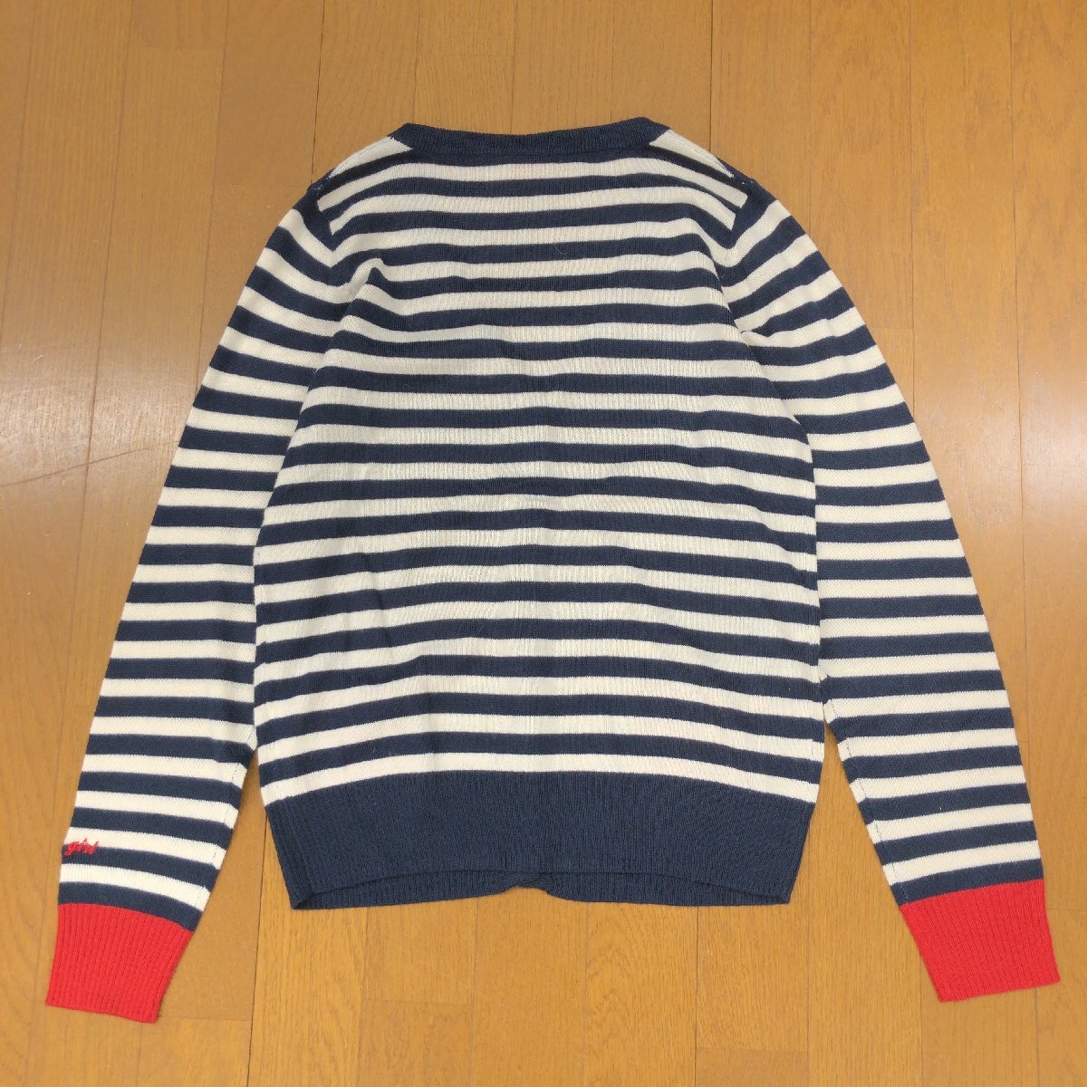 美品 TOMMY GIRL トミーガール ウールブレンド ボーダー ニット カーディガン M 羽織り ポイントロゴ刺繍 レディース トミーヒルフィガー