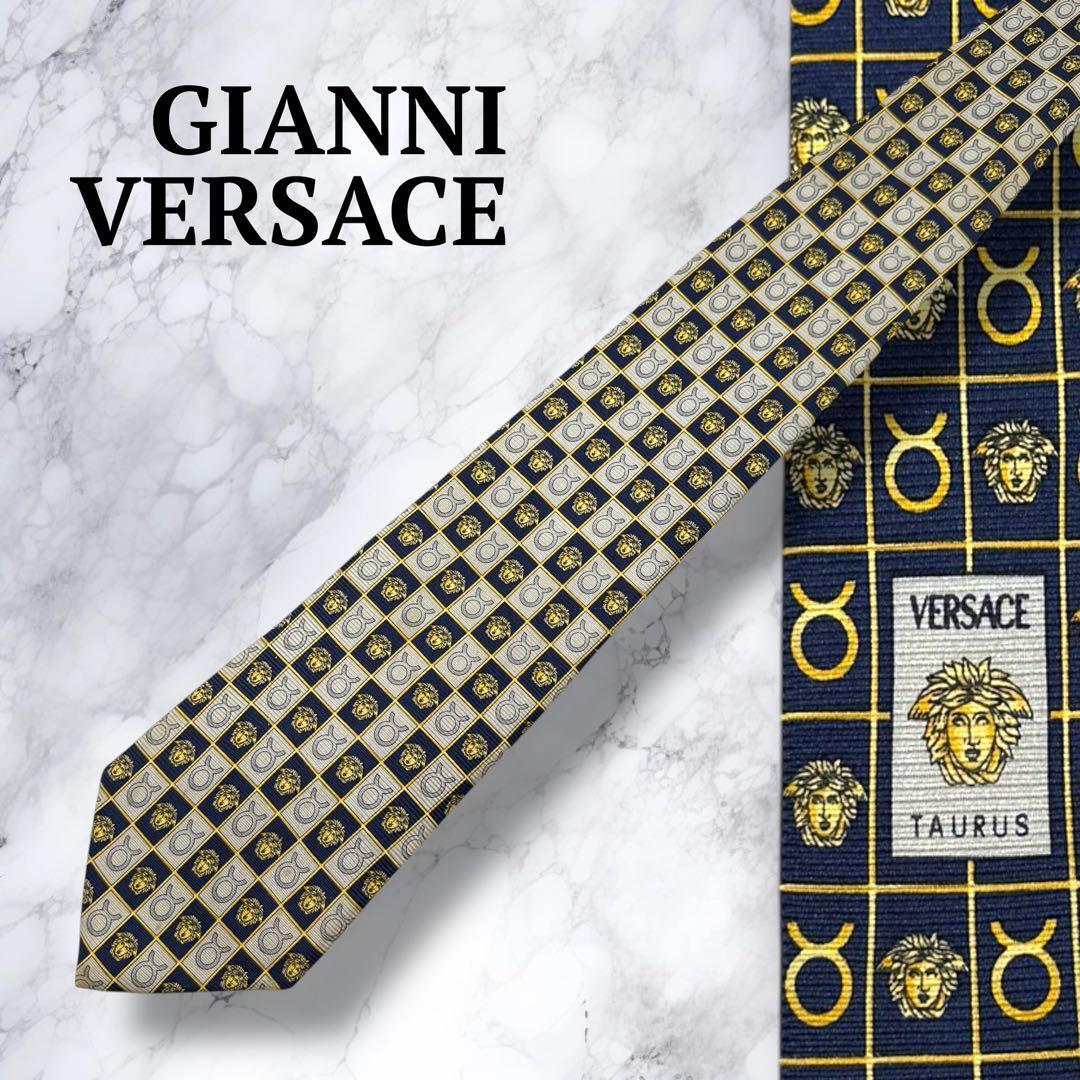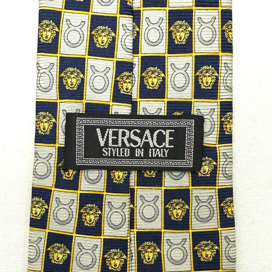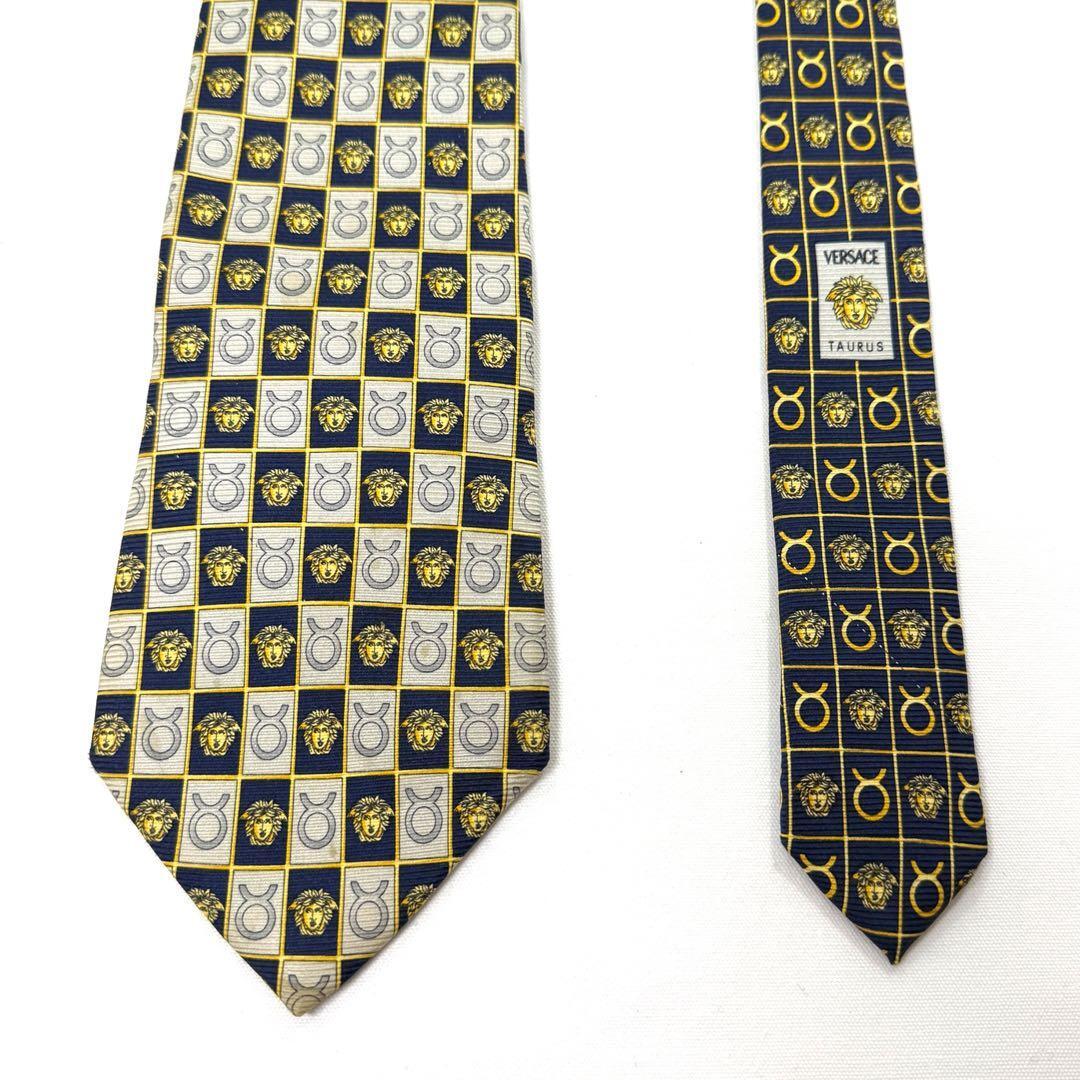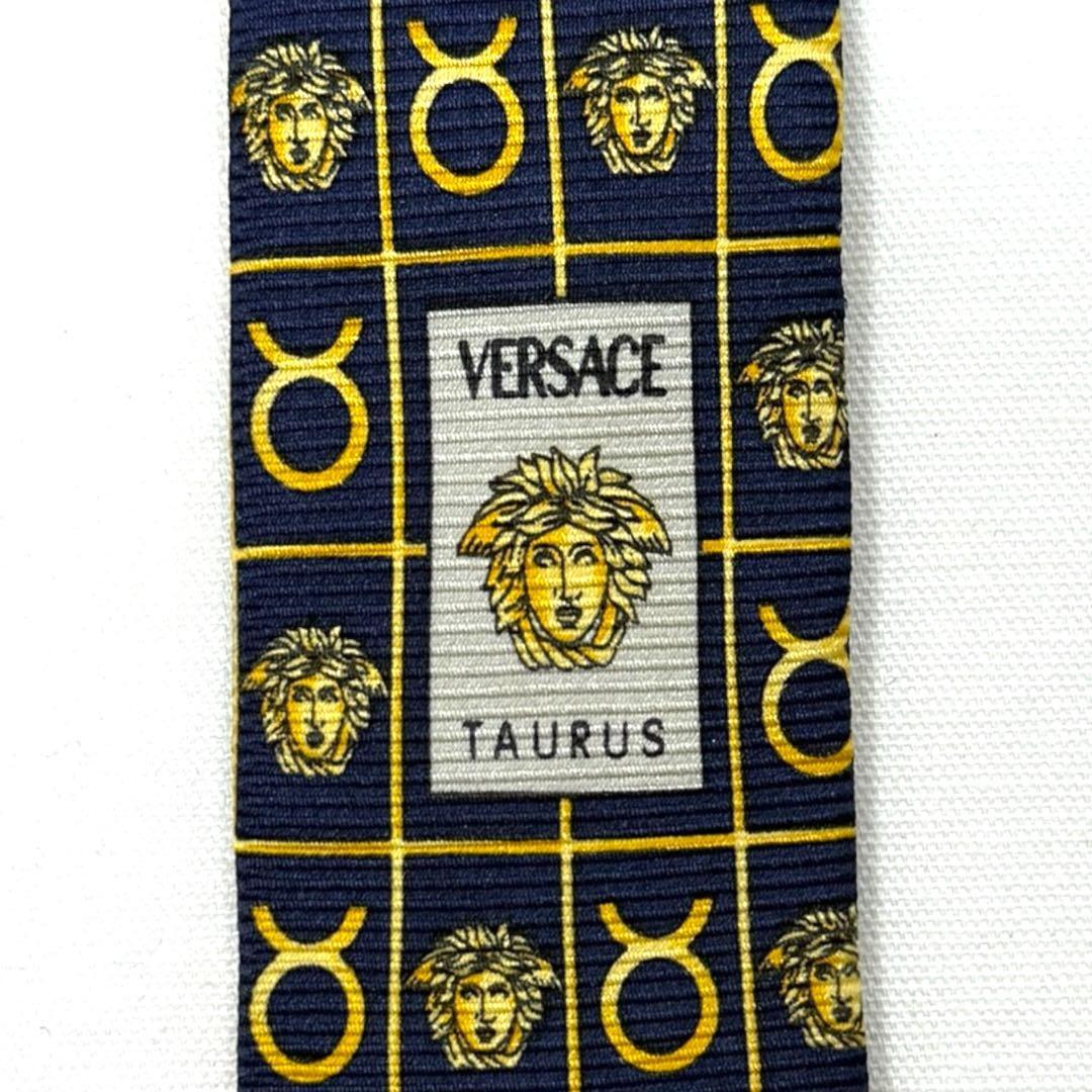 GIANNI VERSACEの人気デザイン、メデューサ × TAURUS(牡牛座) × スクエア総柄のシルクネクタイです。