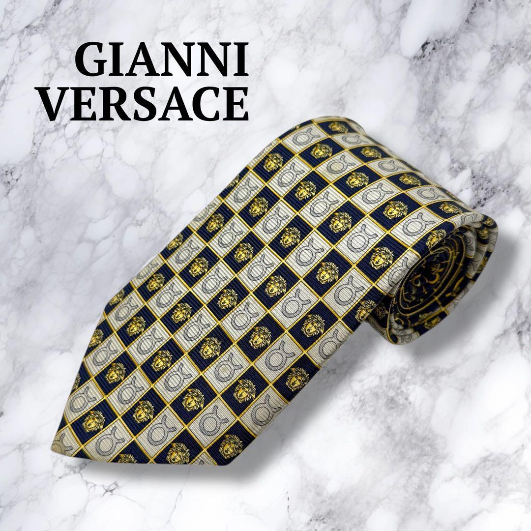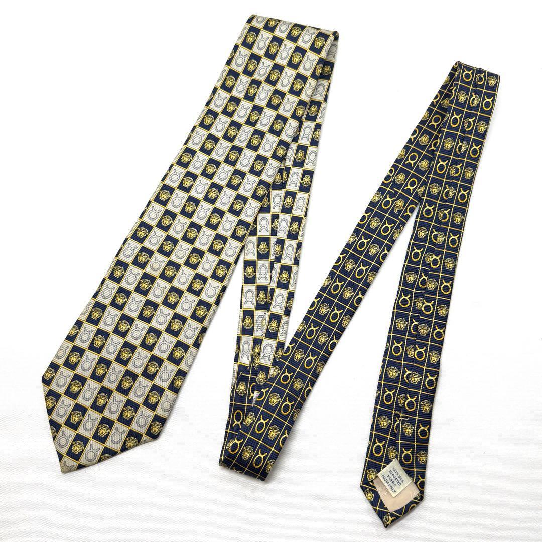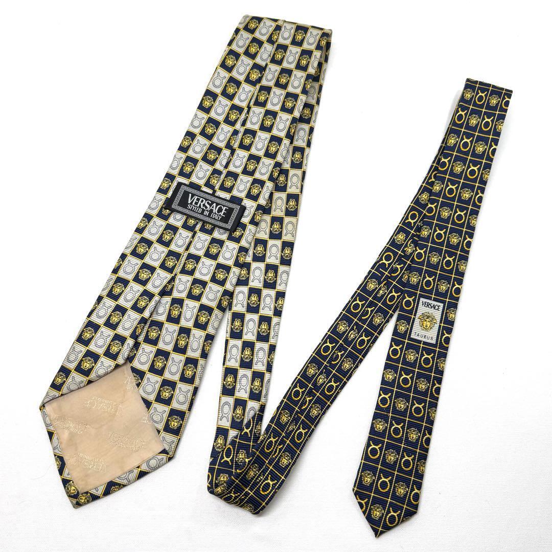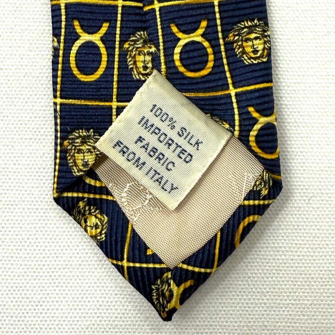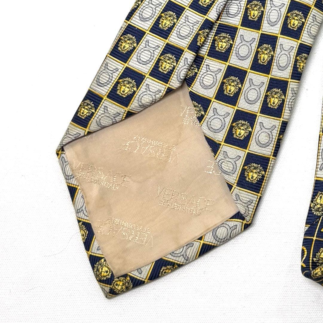 GIANNI VERSACEの人気デザイン、メデューサ × TAURUS(牡牛座) × スクエア総柄のシルクネクタイです。