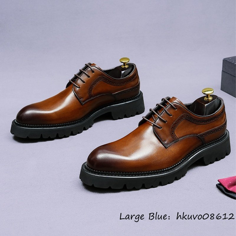 定価12万&最高級 新品 ビジネスシューズ 牛革 革靴 厚底 身長アップ 職人手塗り上げ 本革 レザーシューズ 紳士靴 冠婚葬祭 ブラウン 27.5cm