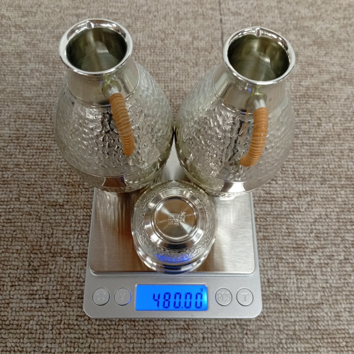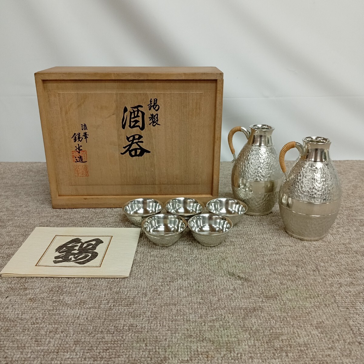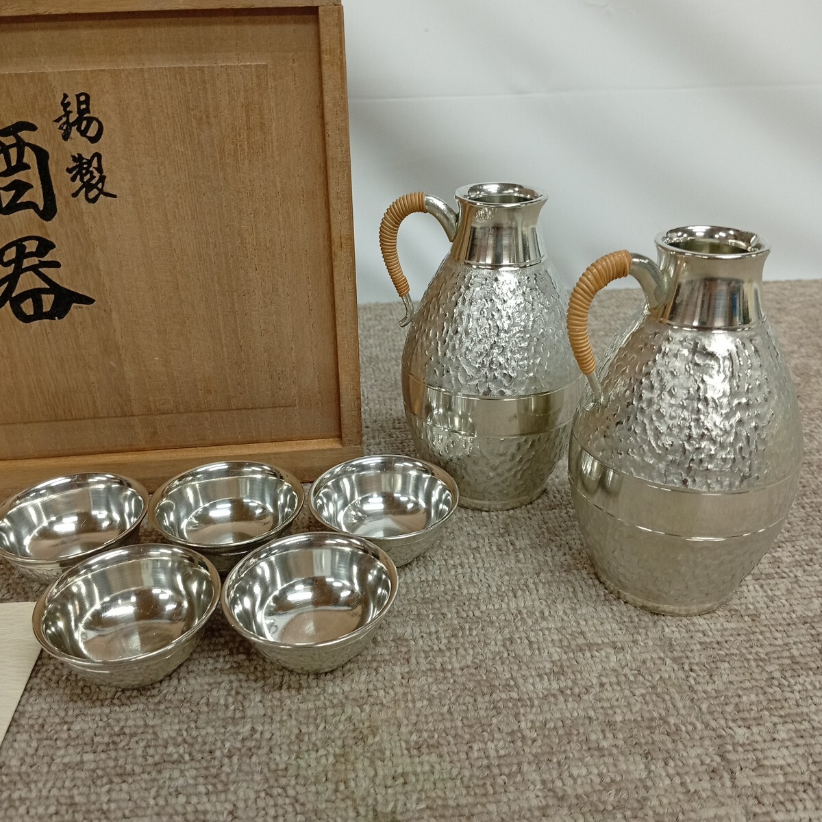 錫製 本錫 酒器セット お猪口 とっくり 酒器揃 狼華 錫半造 約480g 現状品