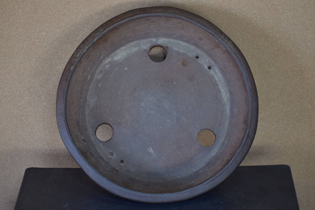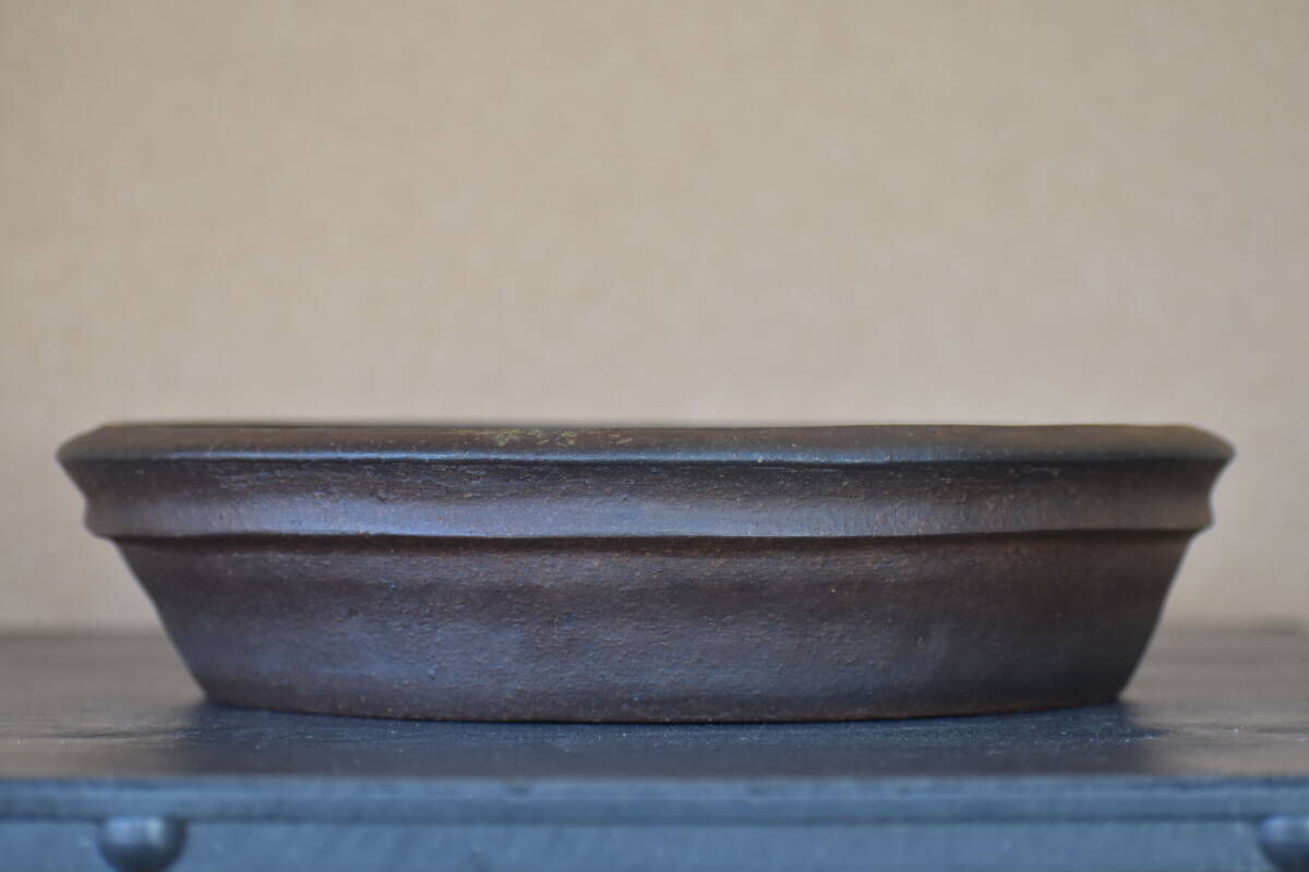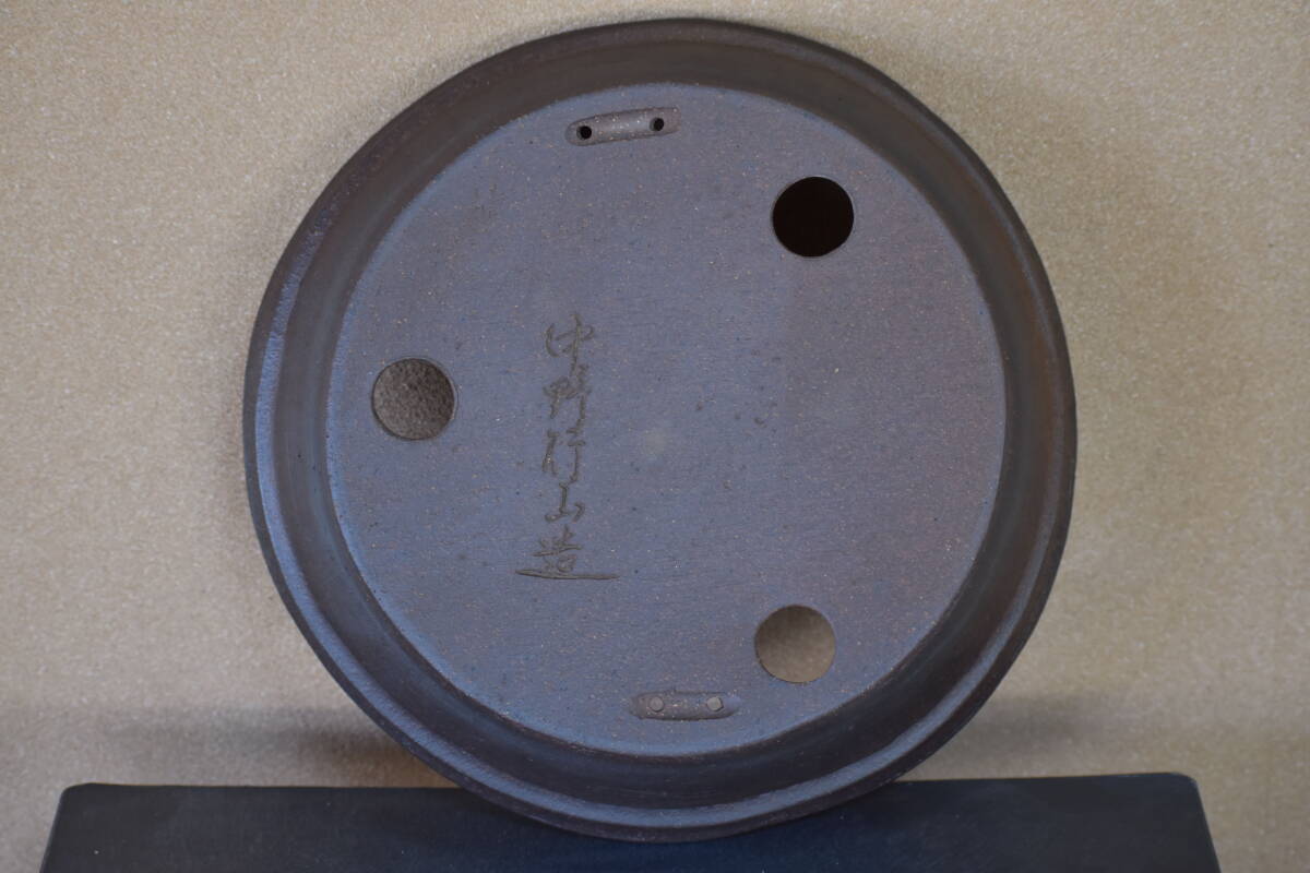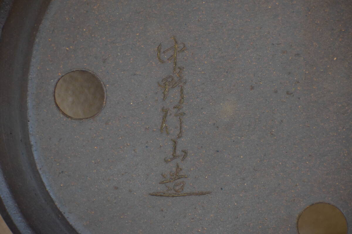 【中野行山】 手造り 珍しい形状の上帯丸鉢 直径29cm 人気和鉢作家 希少品 釘彫落款 泥味抜群