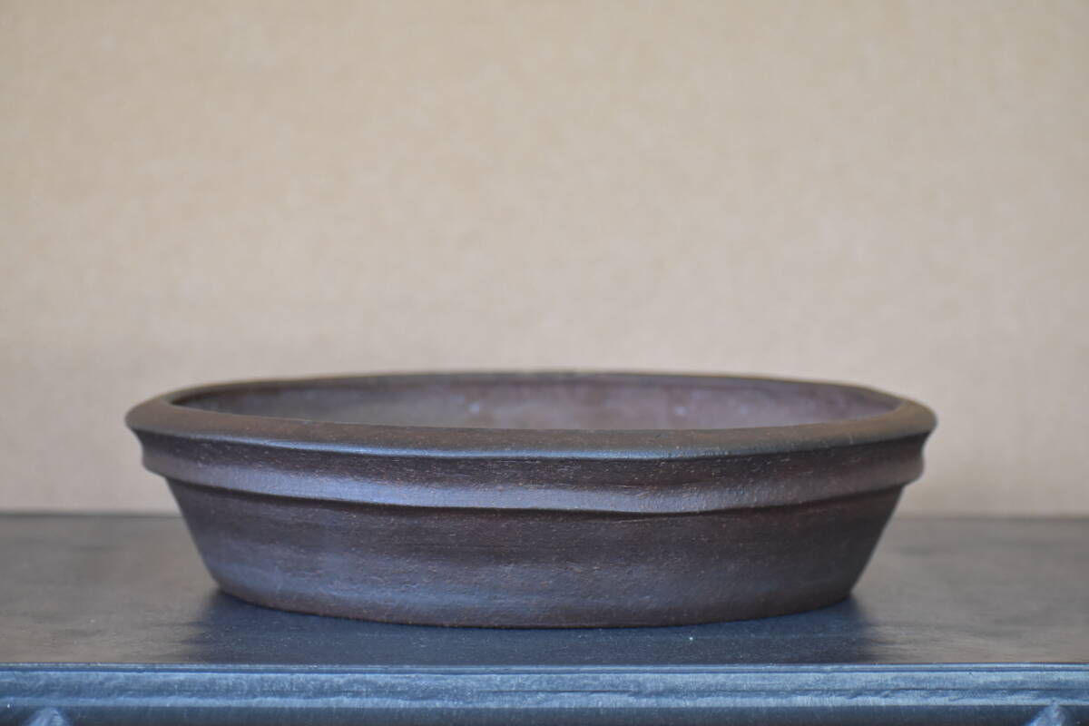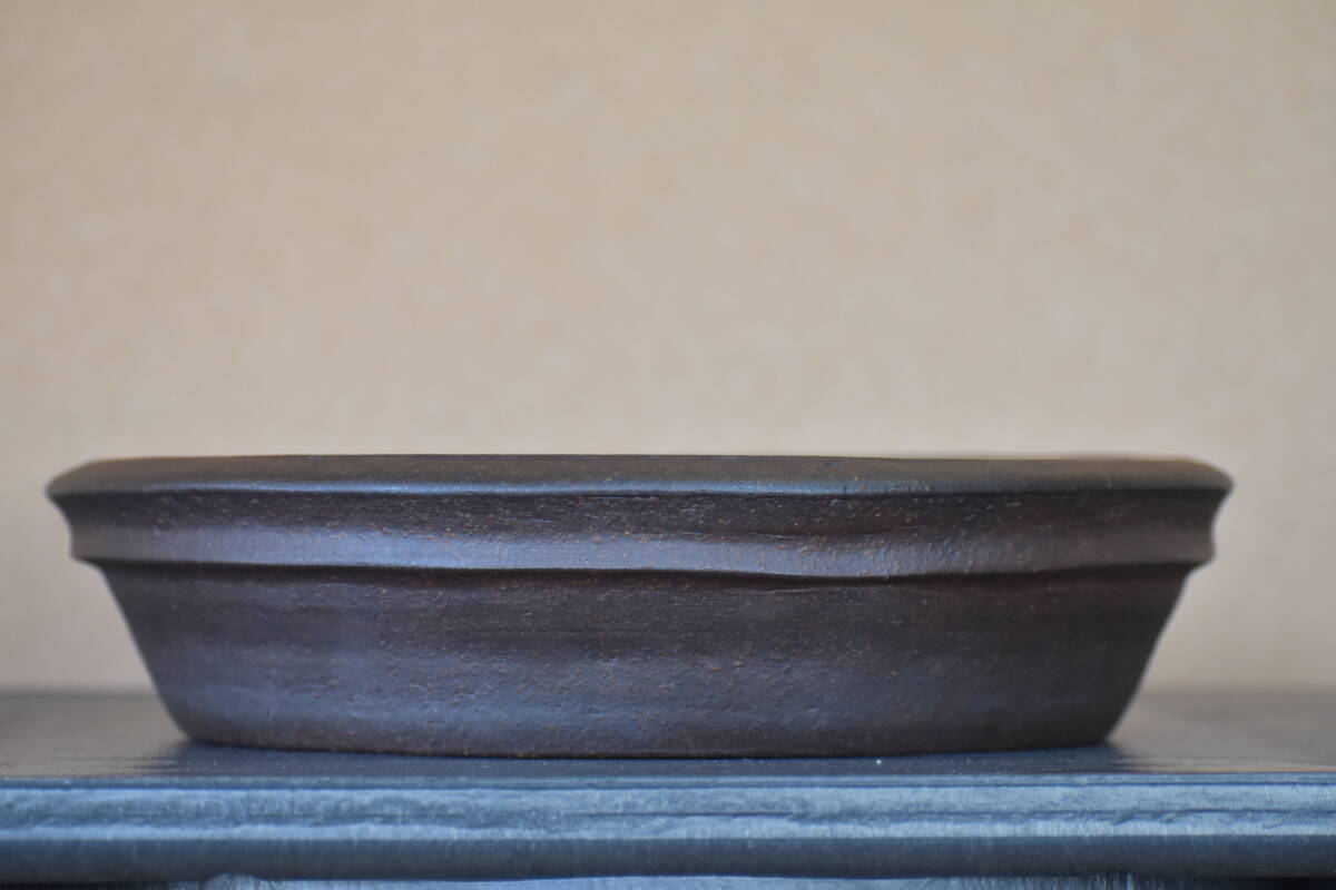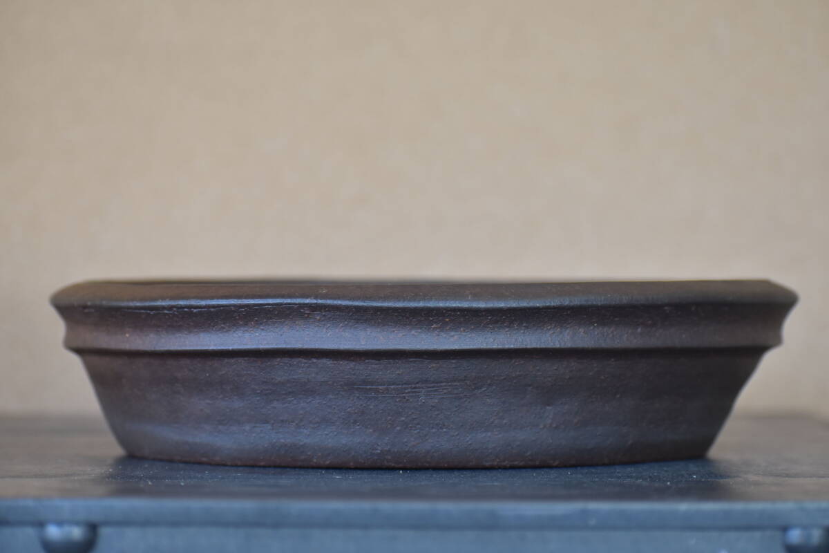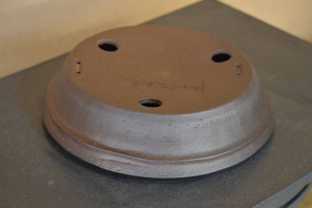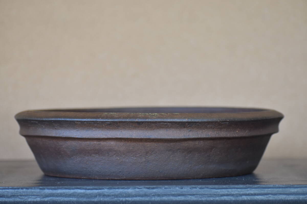 【中野行山】 手造り 珍しい形状の上帯丸鉢 直径29cm 人気和鉢作家 希少品 釘彫落款 泥味抜群