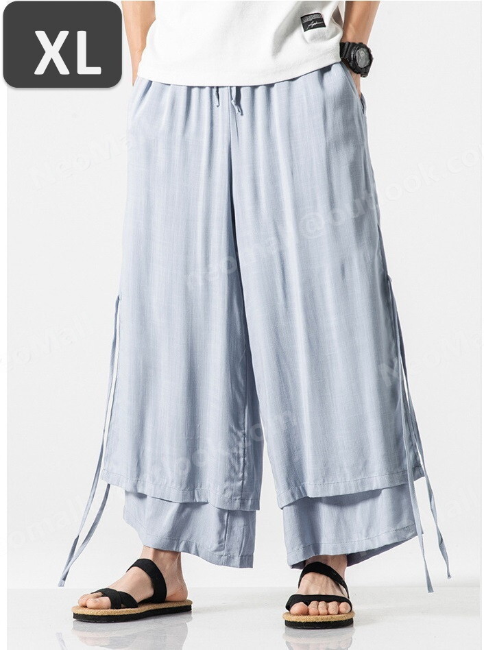 お買い得☆メンズ ワイドパンツ ライトグレー XL カジュアル ロングパンツ スウェット 無地 ポケット付 オールシーズン【066】