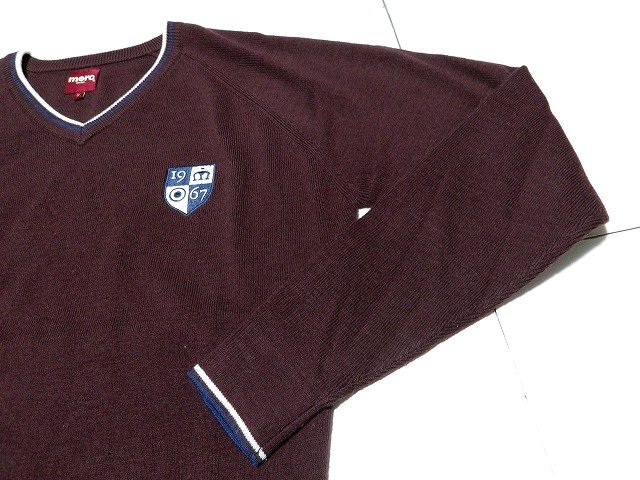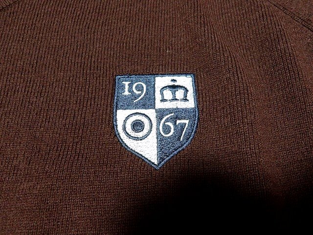 ★正規品です。Vネックデザインの目の細かなやや薄手のセーターです。左胸にワッペンのような刺繍が入っております。