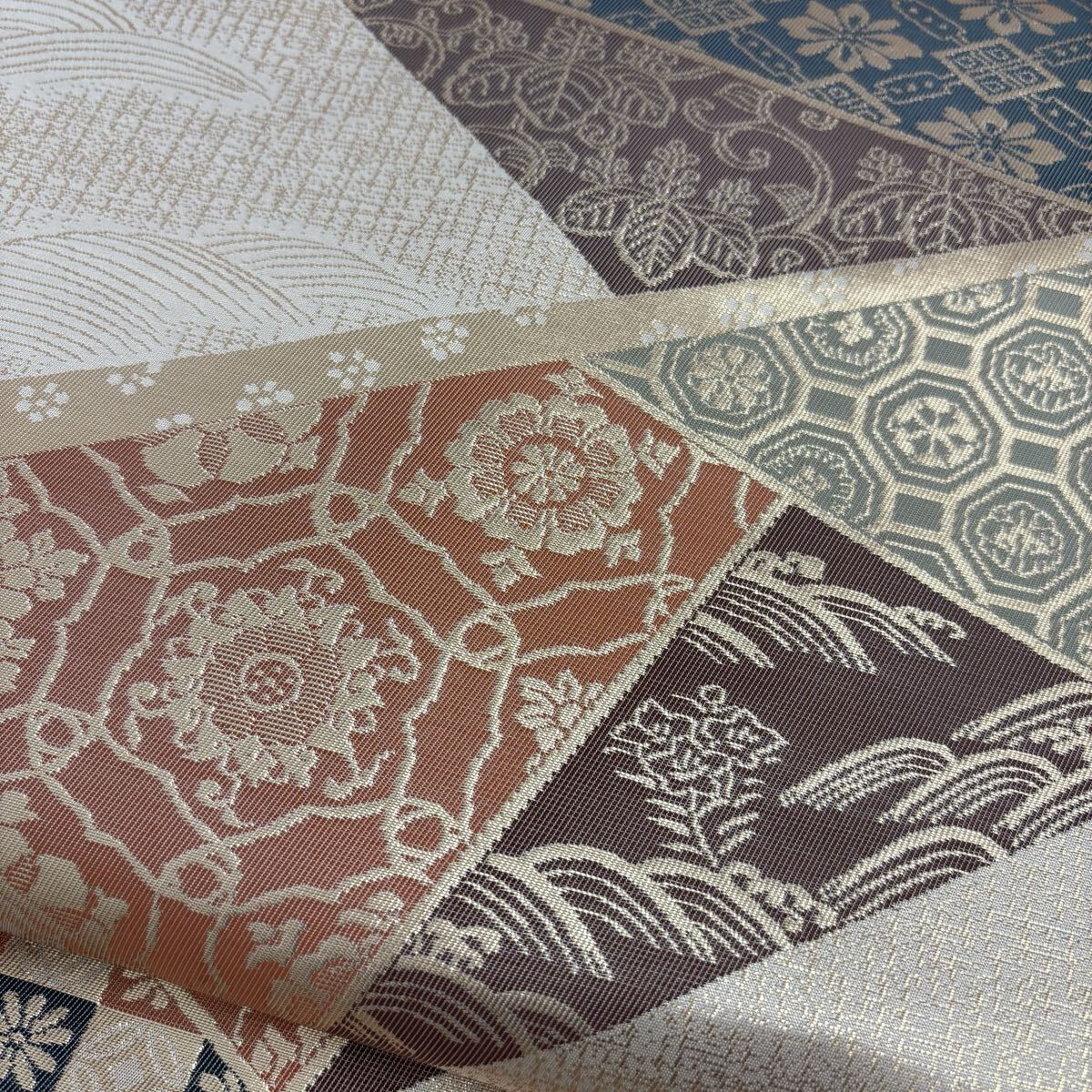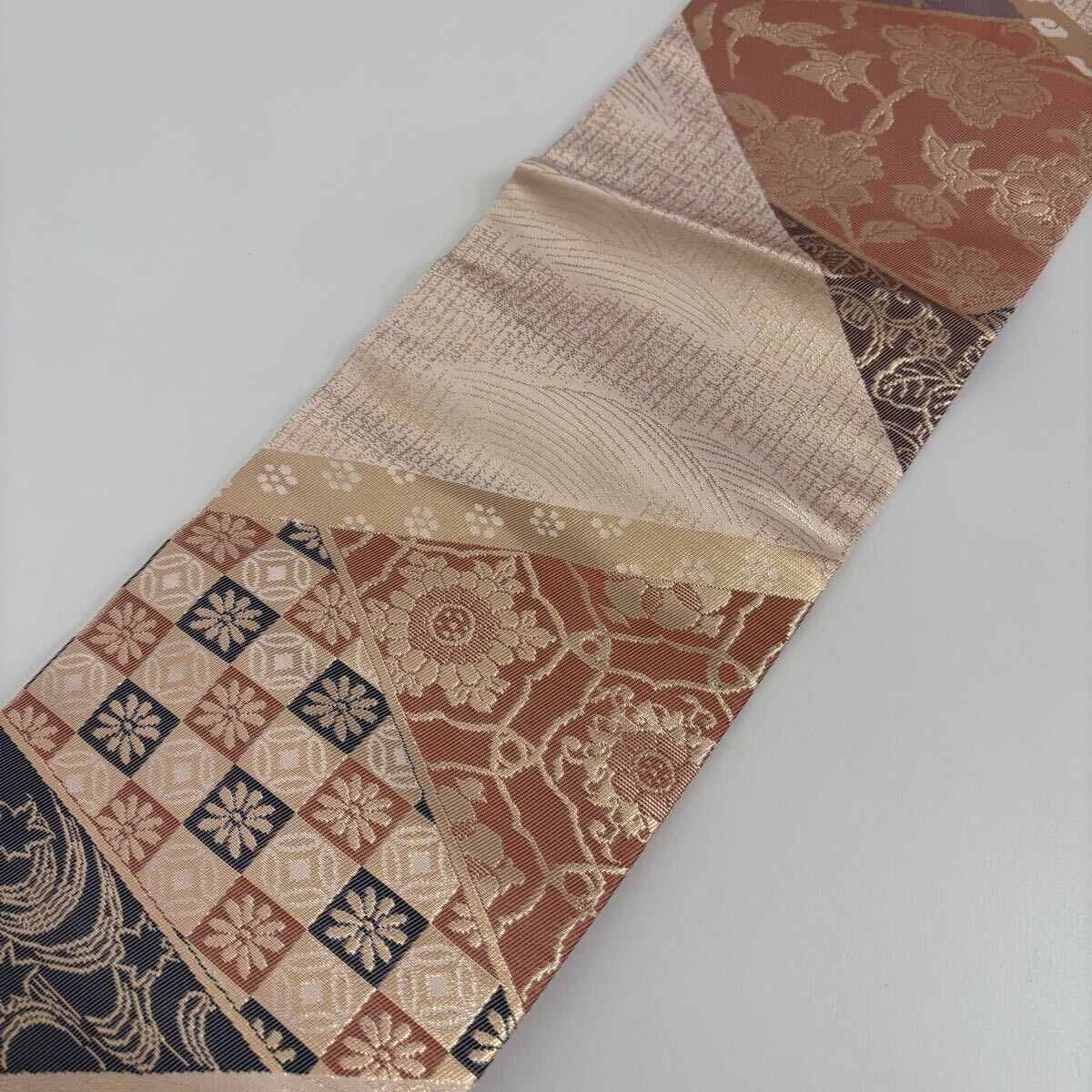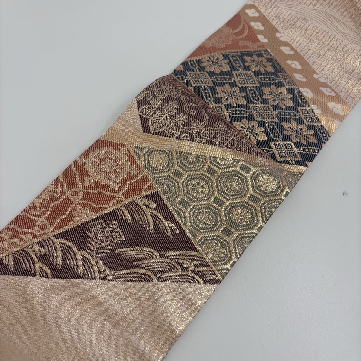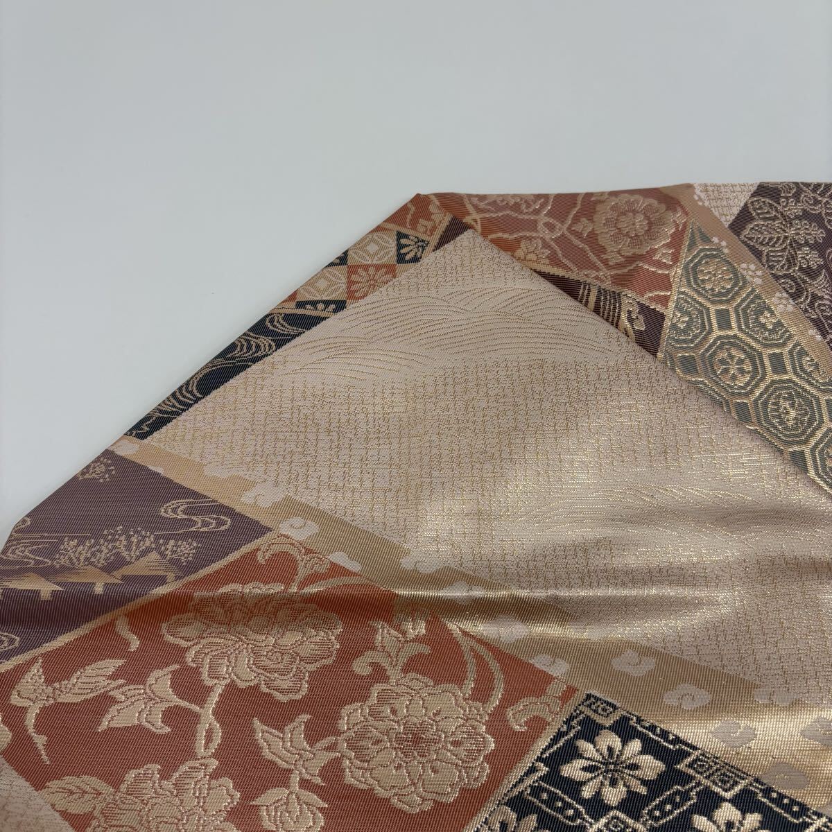 名古屋帯 正絹 名物裂 金彩の上品な加工 九寸 着物 F-1876