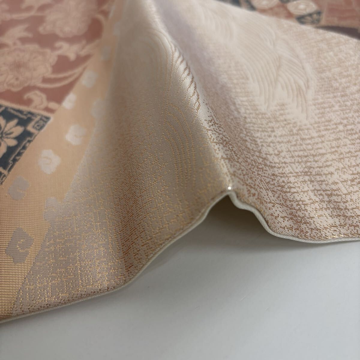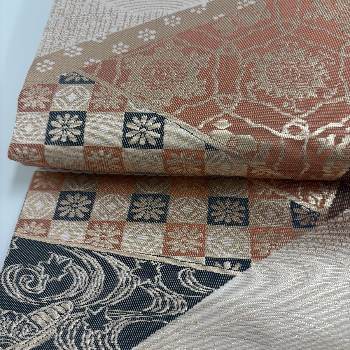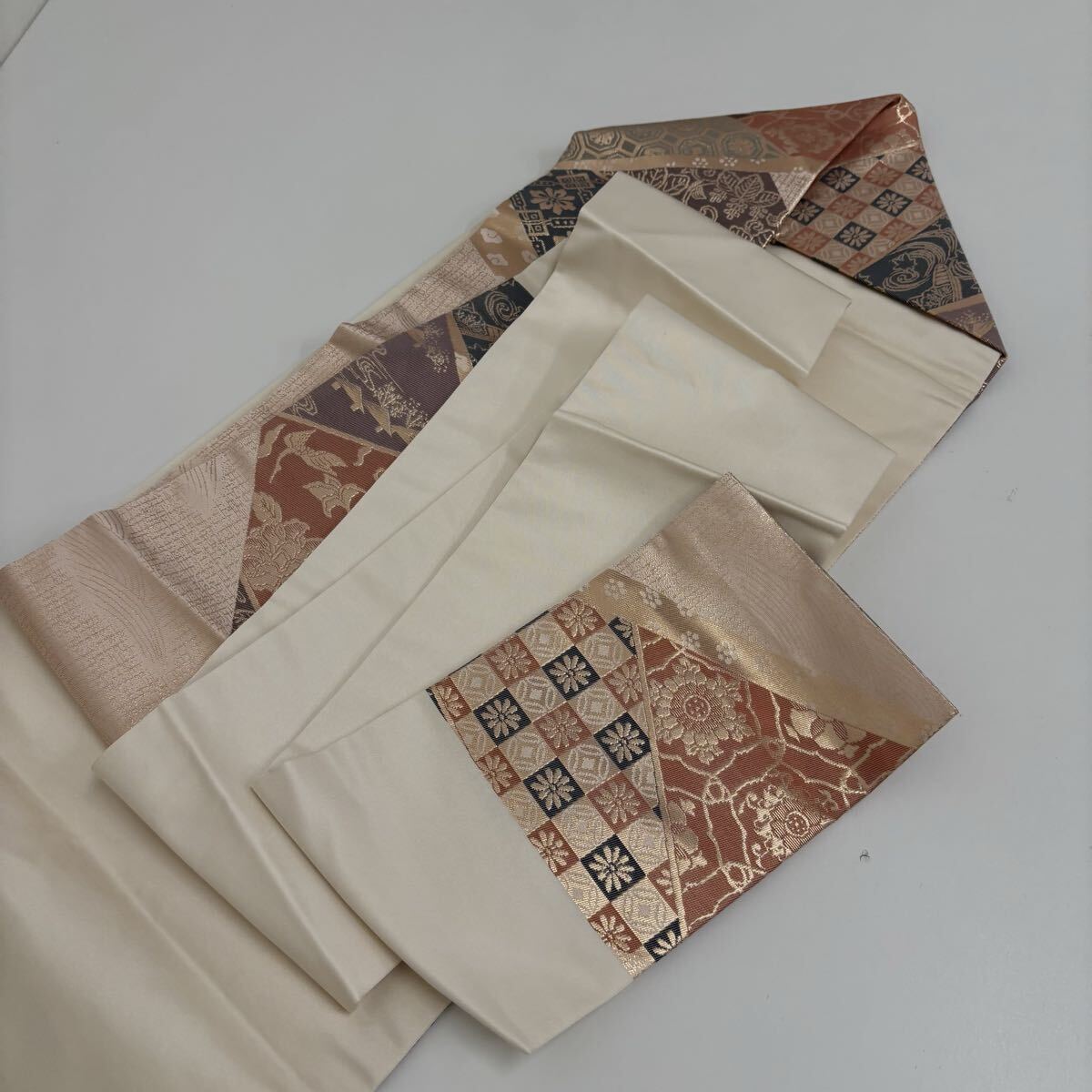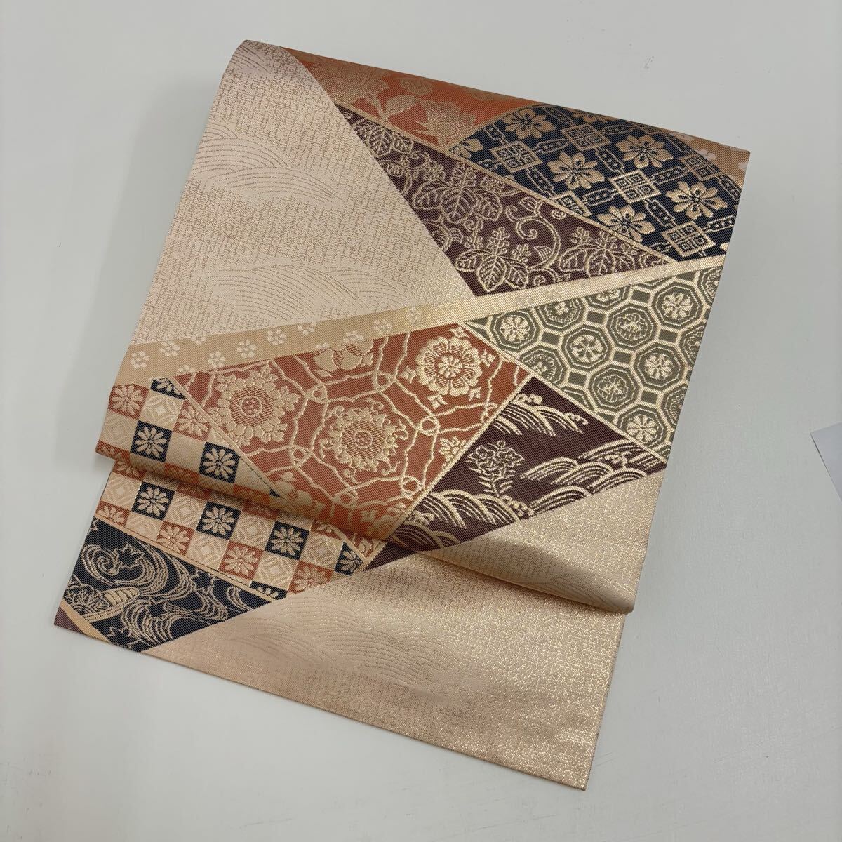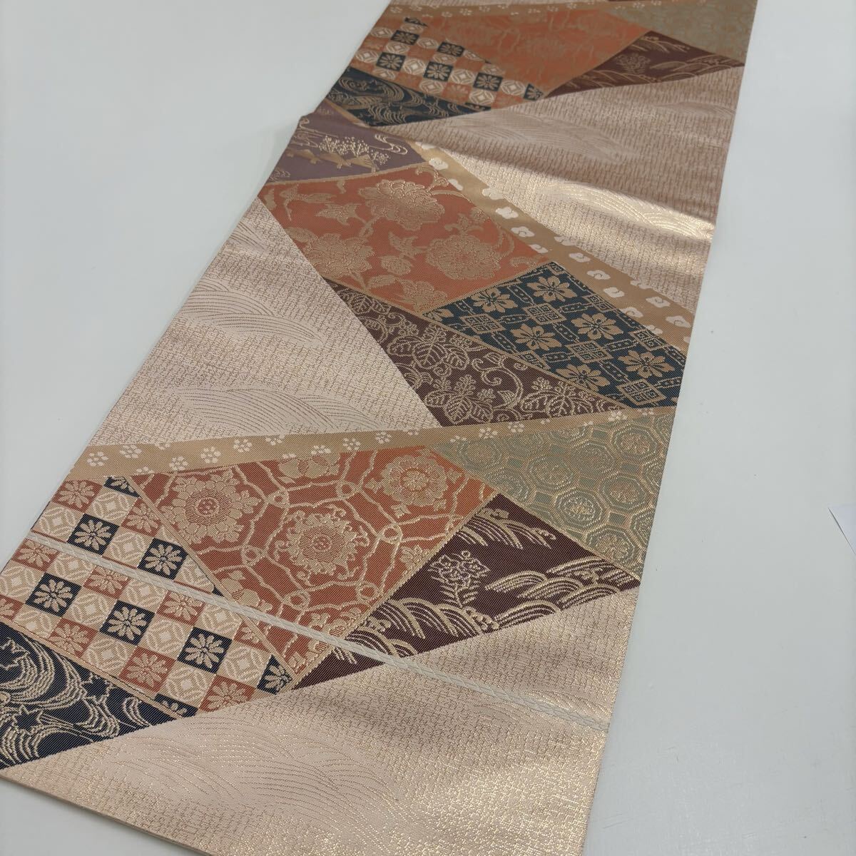 名古屋帯 正絹 名物裂 金彩の上品な加工 九寸 着物 F-1876