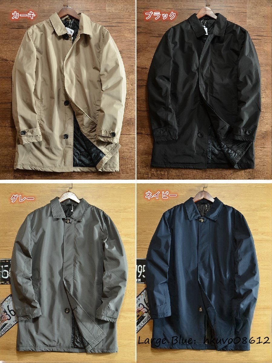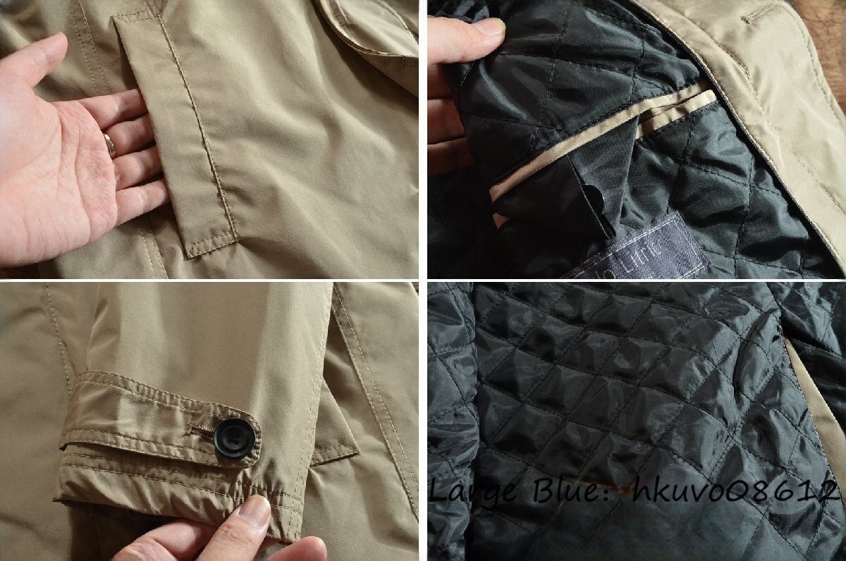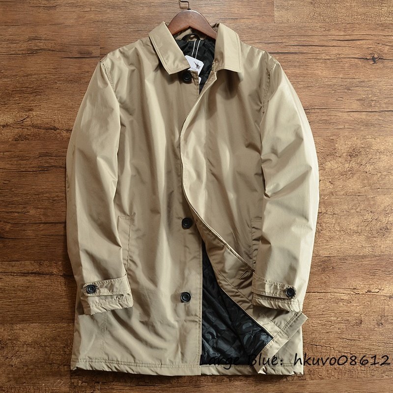 新品◆メンズ ロングコート コート 無地 厚手 春秋冬 中綿 防寒 キルティング スプリングコート ヨーロッパ チェスターコート カーキ 2XL