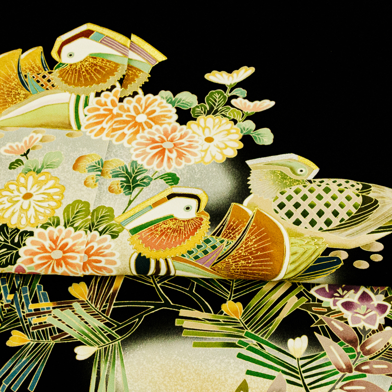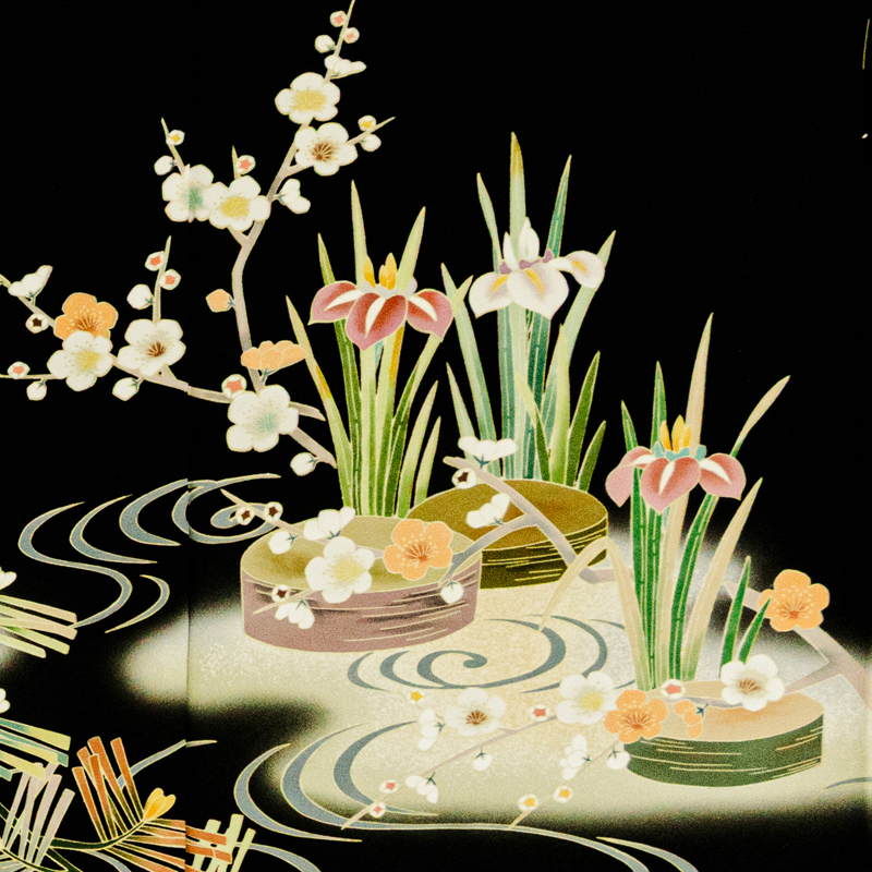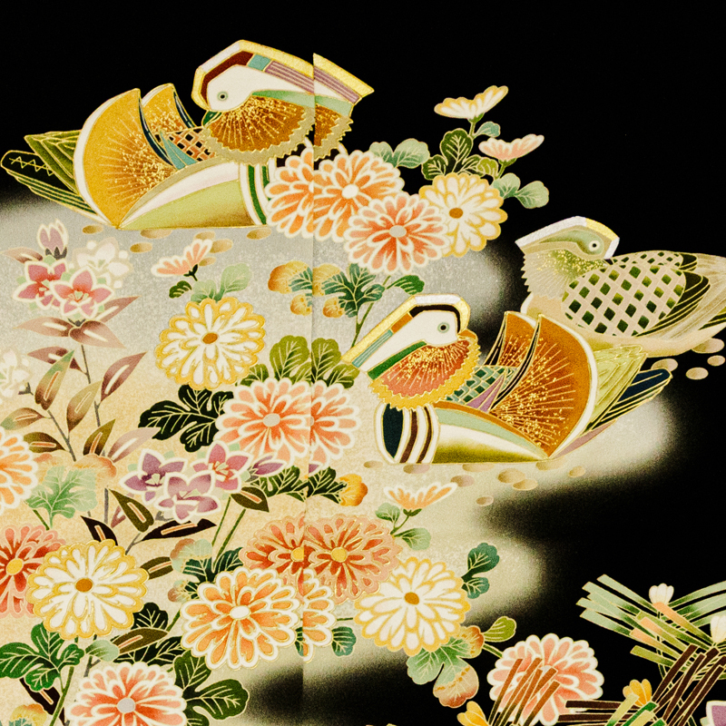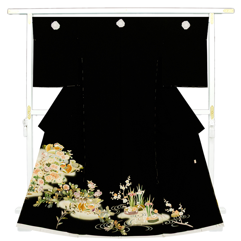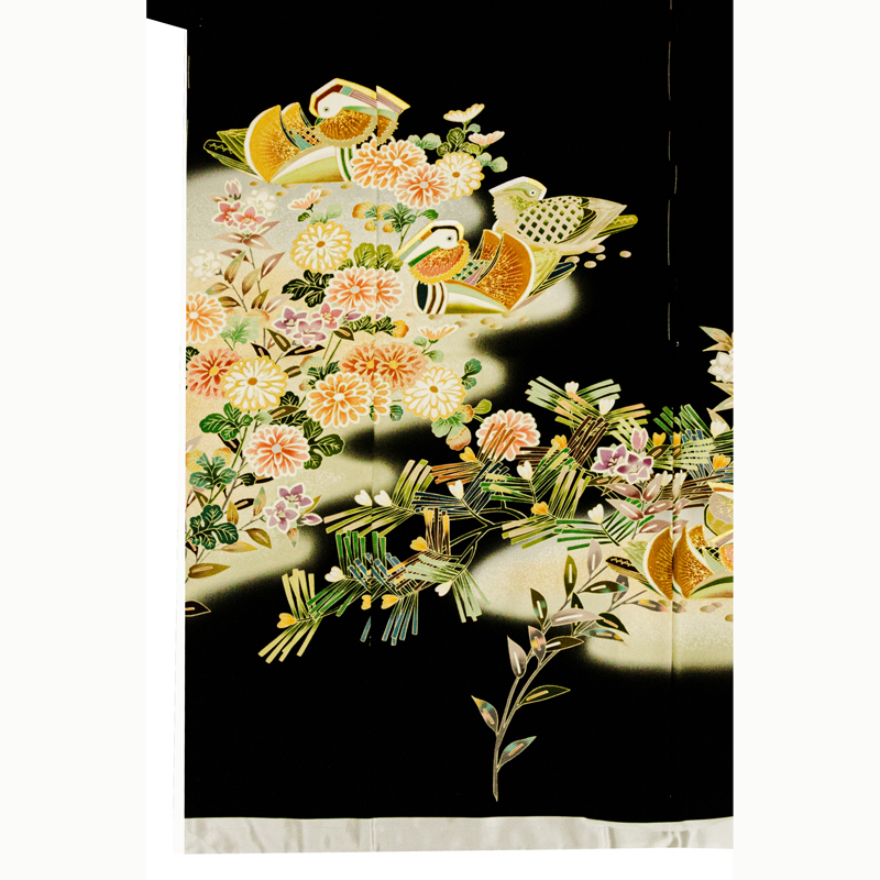 | ★商品説明 | ■京友禅伝統工芸士が友禅染にこだわり華やかにデザインされた黒留袖です。 ■手描き染格調と上品さを大切に王朝庭園祝い松竹梅菊花と鴛鴦図を製作しています。 ■匠のこだわりが感じられる逸品が高いお席での着姿を応援します。 |