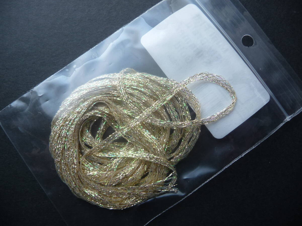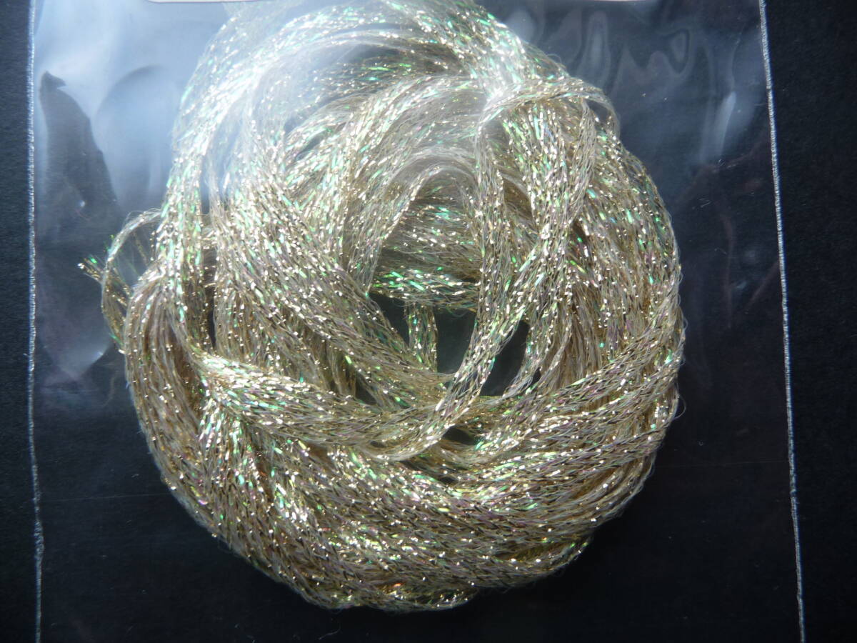 柔らかなフラッシャー素材をフラットに編みこんである為、巻きつけるだけで乱反射するボディーが作れます。ウェットフライや小さめのストリーマーなどに適しています。