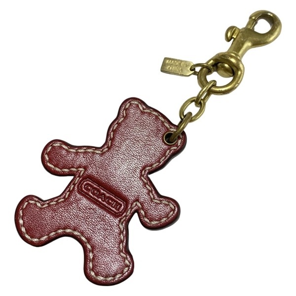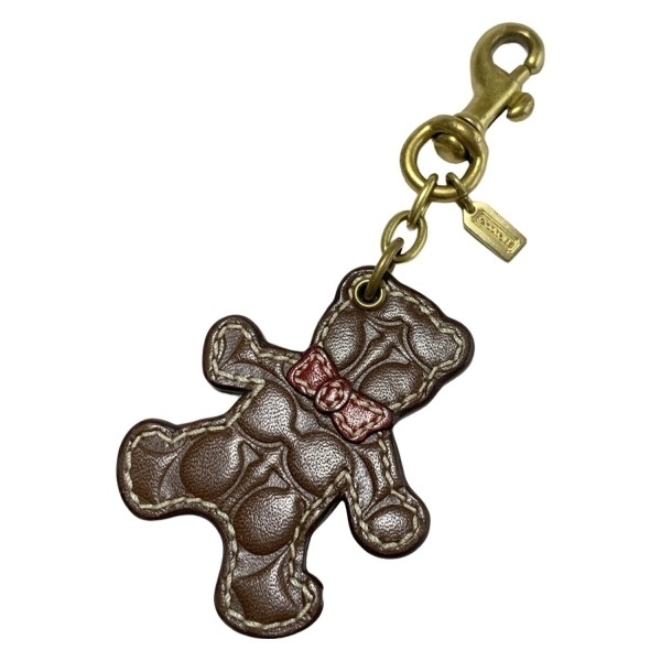 コーチ COACH キーホルダー(チャーム) - レザー ダークブラウン×ボルドー×ゴールド クマ キーホルダー