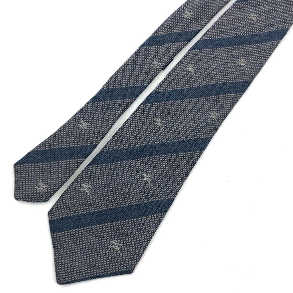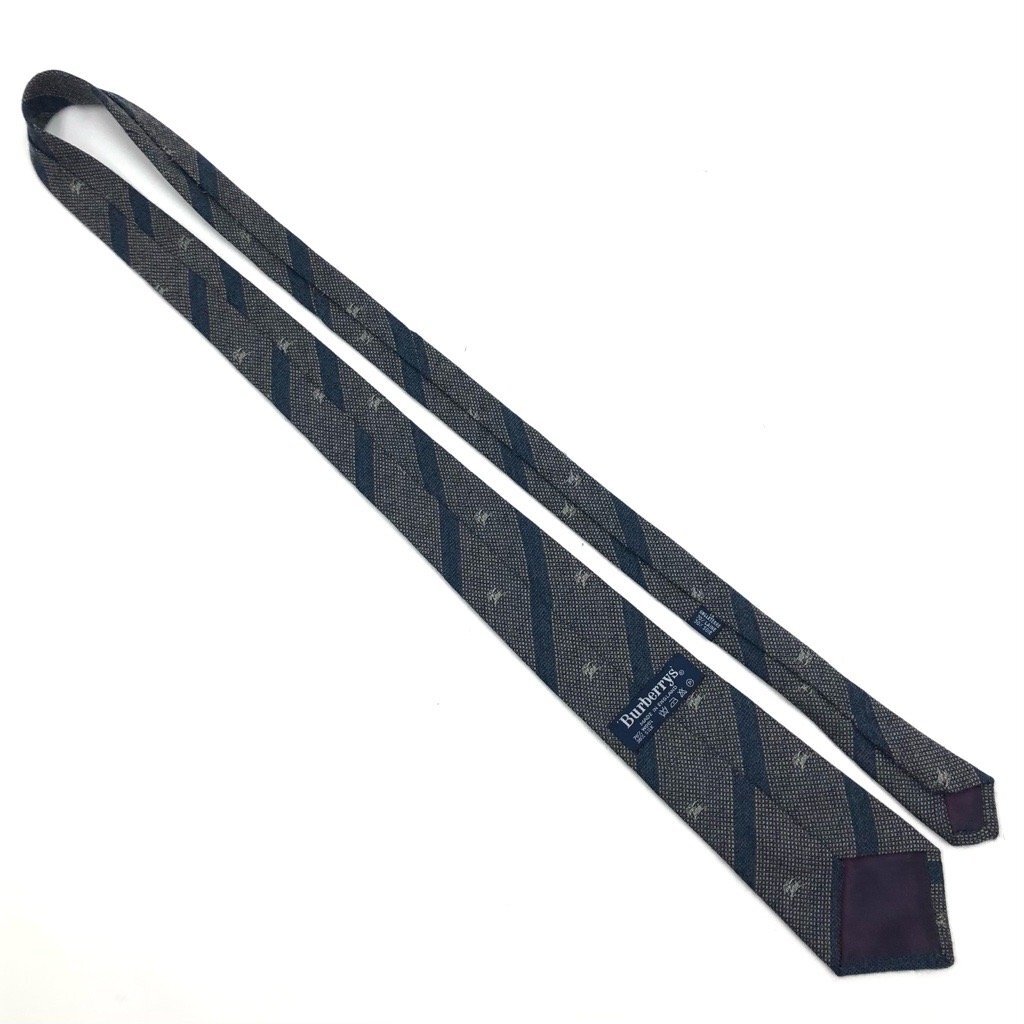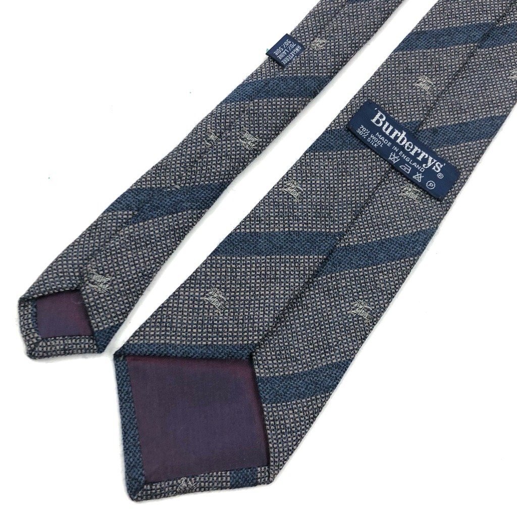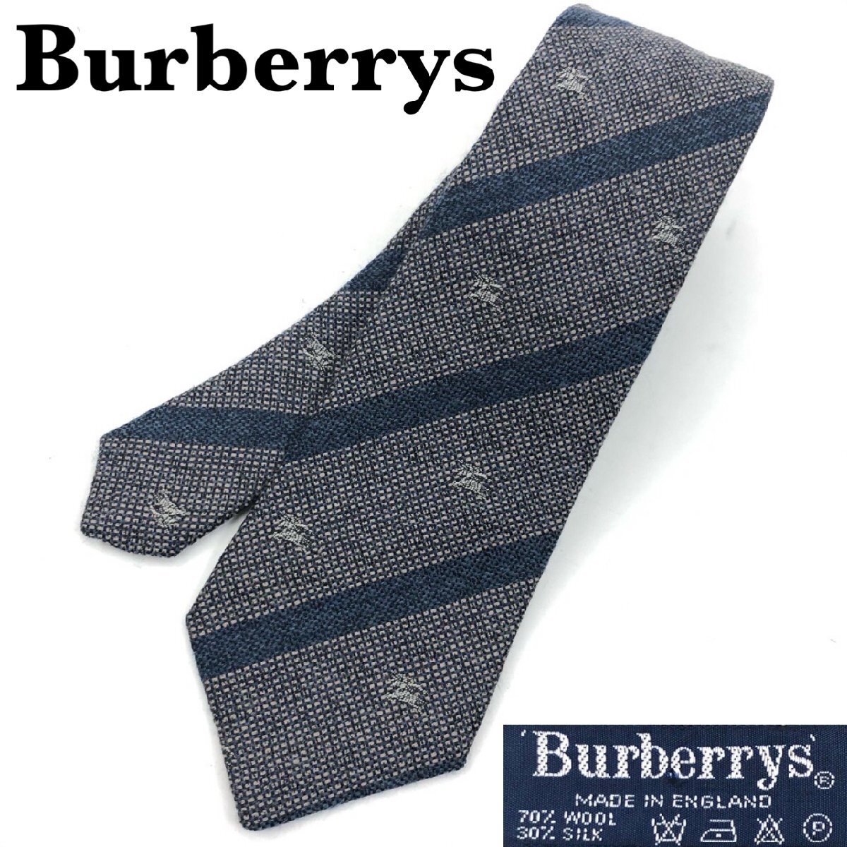 未使用 美品 Burberrys バーバリー ネクタイ レジメンタルタイ ロゴ ウール/シルク 英国製 ブルーグレー 正規品 本物保証 最落無