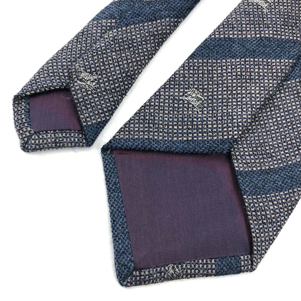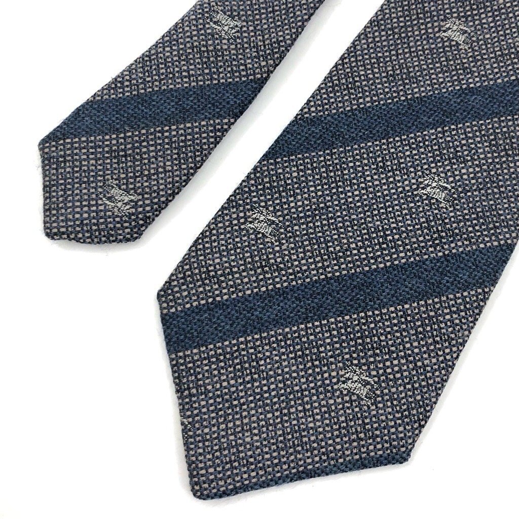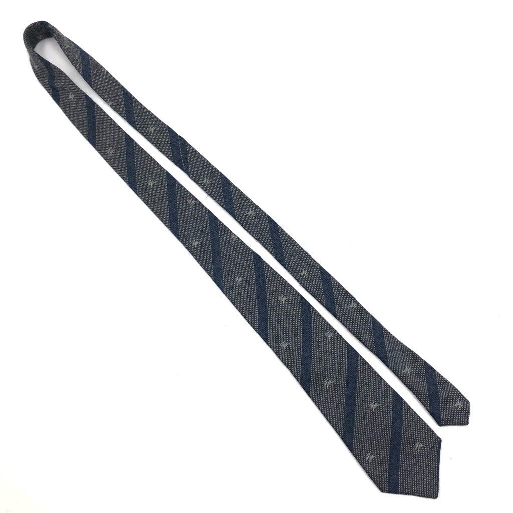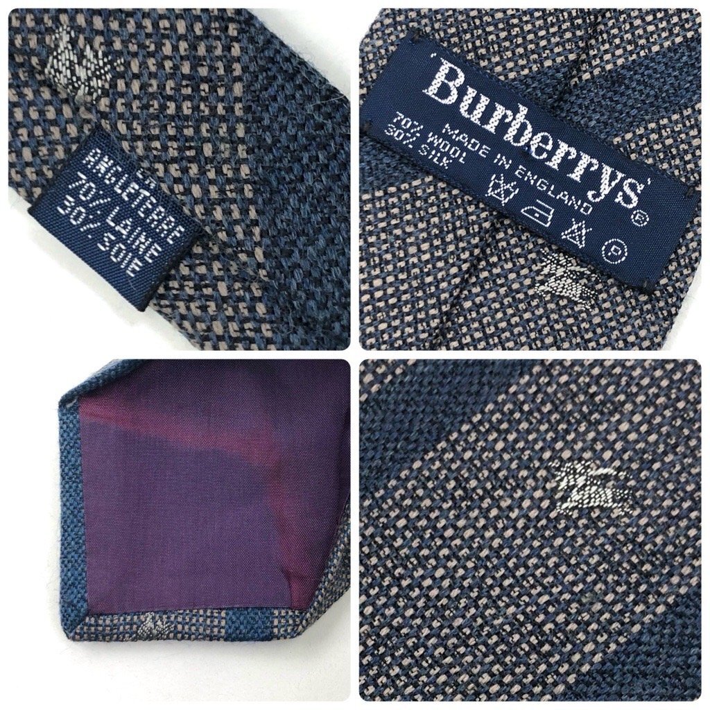 未使用 美品 Burberrys バーバリー ネクタイ レジメンタルタイ ロゴ ウール/シルク 英国製 ブルーグレー 正規品 本物保証 最落無