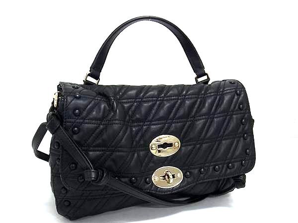 1円 ■美品■ ZANELLATO ザネラート ポスティーナ レザー 2WAY ワンハンドル クロスボディ ハンドバッグ ショルダー ブラック系 FU6712