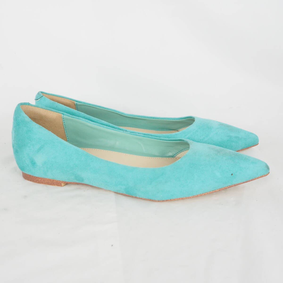 | ページをご覧いただきありがとうございます^^靴、ブーツを中心に出品しております。 鮮やかなターコイズカラーが目を引くフラットパンプスです。 すっきりとしたポインテッドトゥで、足元を上品に演出します。 軽やかな印象で、春夏コーディネートにぴったりの一足です。 ☆商品詳細☆