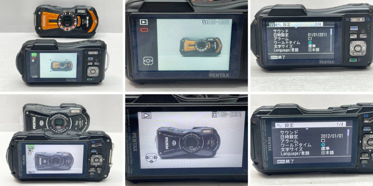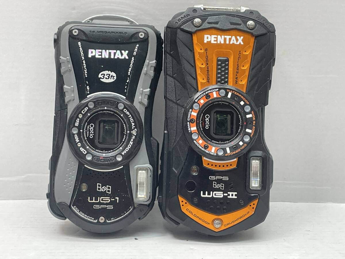 01w2425 ★1円~ PENTAX デジカメ 2点セット Optio WG-1 WG-2 グレー シャイニーオレンジ アウトドアカメラ 簡易動作確認済み 中古品