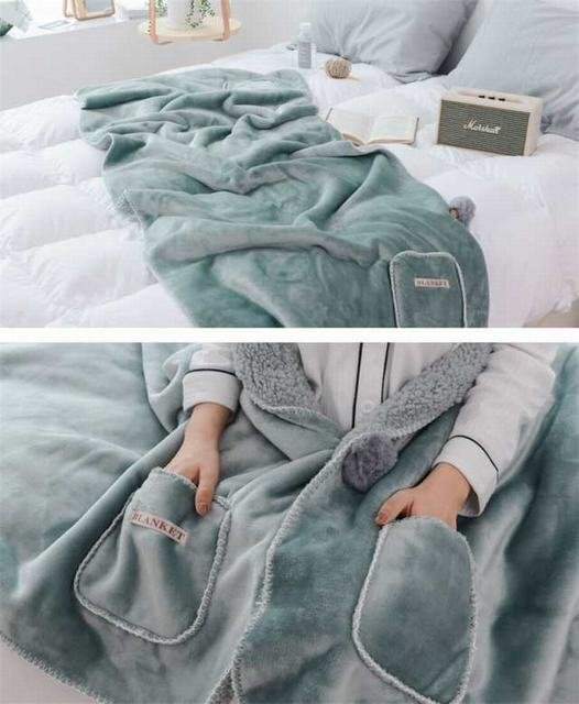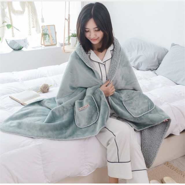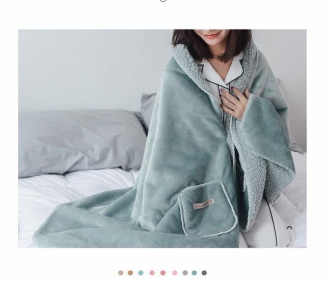 ブランケット 掛け毛布 裏起毛 裏ボア ひざ掛け 肩掛け フランネル 着る毛布 ポンチョ マイクロファイバー 暖かい 保温 グリーン