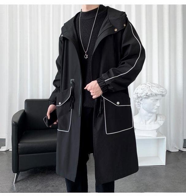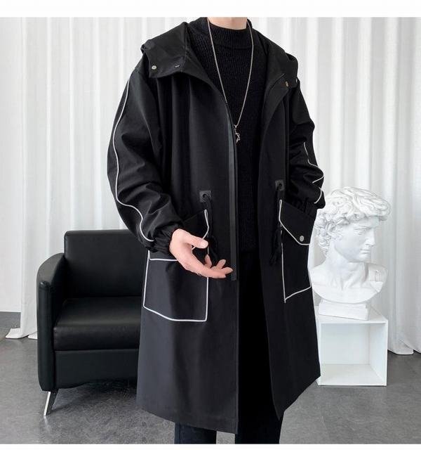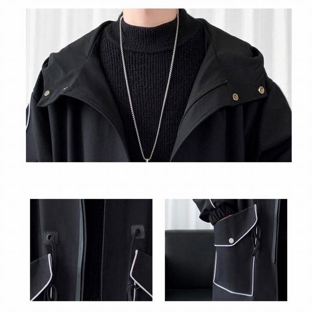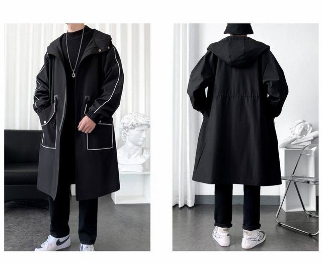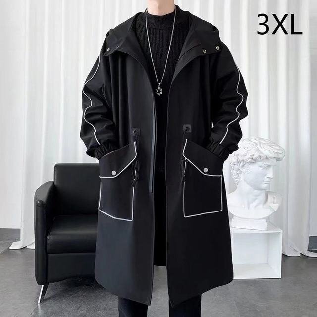トレンチコート ロングコート メンズ アウター 防風 通勤 ゆったり ビッグシルエット フード付き 秋春コーデ ブラック 3XL