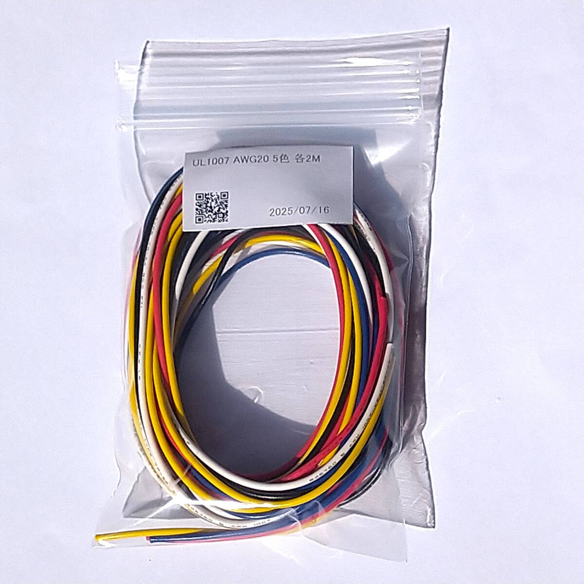 UL1007 AWG20(0.5sq相当) 5色 各2M 合計10M カラー:赤黒白青黄 300V 80℃ スズメッキ 耐熱ビニル撚り線 より線 #081J
