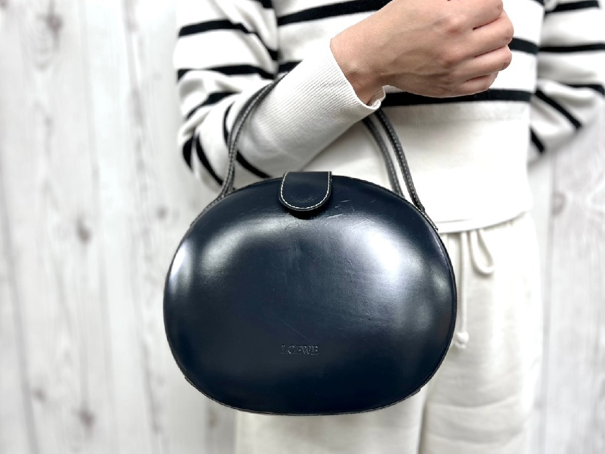 | 極美品 LOEWE ロエベ ヴィンテージ ハンドバッグ バッグ レザー 紺 92072Y | ||