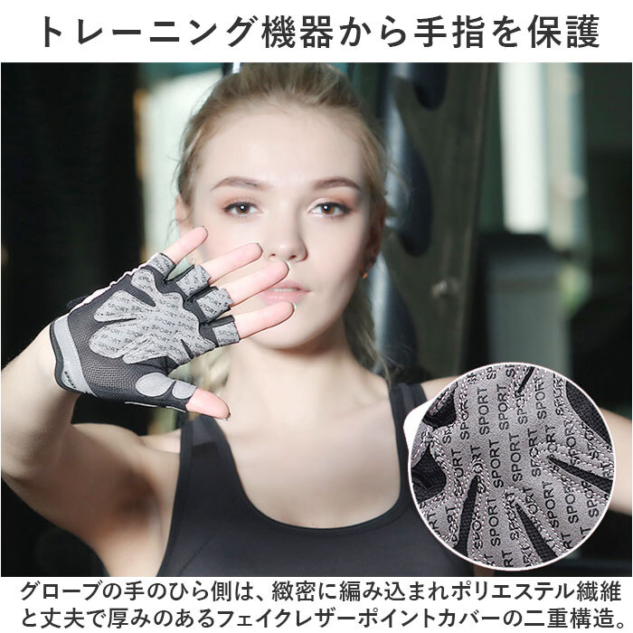 | 商品説明 | ・・ダンベルやマシントレーニングで酷使しがちな手のひらをしっかり保護!フィットネスウェアの手元が明るく映える「トレーニンググローブ」が新登場! ・【トレーニング機器から手指を保護】 ・グローブの手のひら側は、緻密に編み込まれポリエステル繊維と丈夫で厚みのあるフェイクレザーポイントカバーの二重構造。ダンベルやバーベル運動など、ウェイトトレーニング時の擦り切れから手指を優しく保護。 ・【抜群のグリップ力で筋トレ効率UP】 ・手のひら中央と指の腹に配置されたフェイクレザーポイントカバーには、「SPORT」の文字のシリコンプリント加工を施し、トレーニング機器をしっかりグリップ。汗による滑りを防いで、筋トレ効率が飛躍的にUP! ・【ハーフフィンガーデザイン】 ・フィットネス機器の設定や、バーベルの重量プレート交換など、細かい手元の作業もラクラクこなせる、指先の開いたフィンガーレスタイプ。 ・【脱げ落ち防止リストベルト】 ・面ファスナー式のリストベルトで手首をしっかり留めることで、手のひら全体にグローブがフィット!負荷の大きなトレーニング中の脱げ落ちを防ぎ、より安全にトレーニングが楽しめる。 ・【スムーズに外せるプルタブ付き】 ・中指・薬指の内側には、もう片方の指を引っかけてグローブがスムーズに外せるプルタブ付き。特に擦り切れやダメージを受けやすい指の腹の保護にも効果的。 ・【汗をかいても蒸れずに快適】 ・手の甲から指の根本にかけては、ストレッチ性・速乾性に優れたメッシュ生地を採用。手の甲側の中央は丸く開いたデザインなので、トレーニング中も蒸れずに快適。 ・【カバンに忍ばせてラクラク持ち運び】 ・お仕事帰りのすき間時間を活用して24時間ジムに通っているビジネスパーソンに嬉しい、かさばらずに持ち運びに便利な軽い素材使いがポイント。 ・【ご家庭で簡単お洗濯♪】 ・取り扱いの楽なポリエステル・ポリウレタン混紡素材なので、ご家庭で手軽に丸洗いができるのも嬉しいポイント。こまめにお手入れしていつでも清潔さをキープ。(※タンブラー乾燥はご利用いただけません。) |
