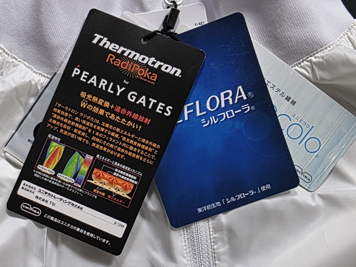 耐久撥水性に優れたタフレックスストレッチを採用した、ドビー織でアイアンボーダー柄を表現した国内生産で丁寧に手間をかけた凝った作りのパーリーゲイツオリジナル素材を使用しています。