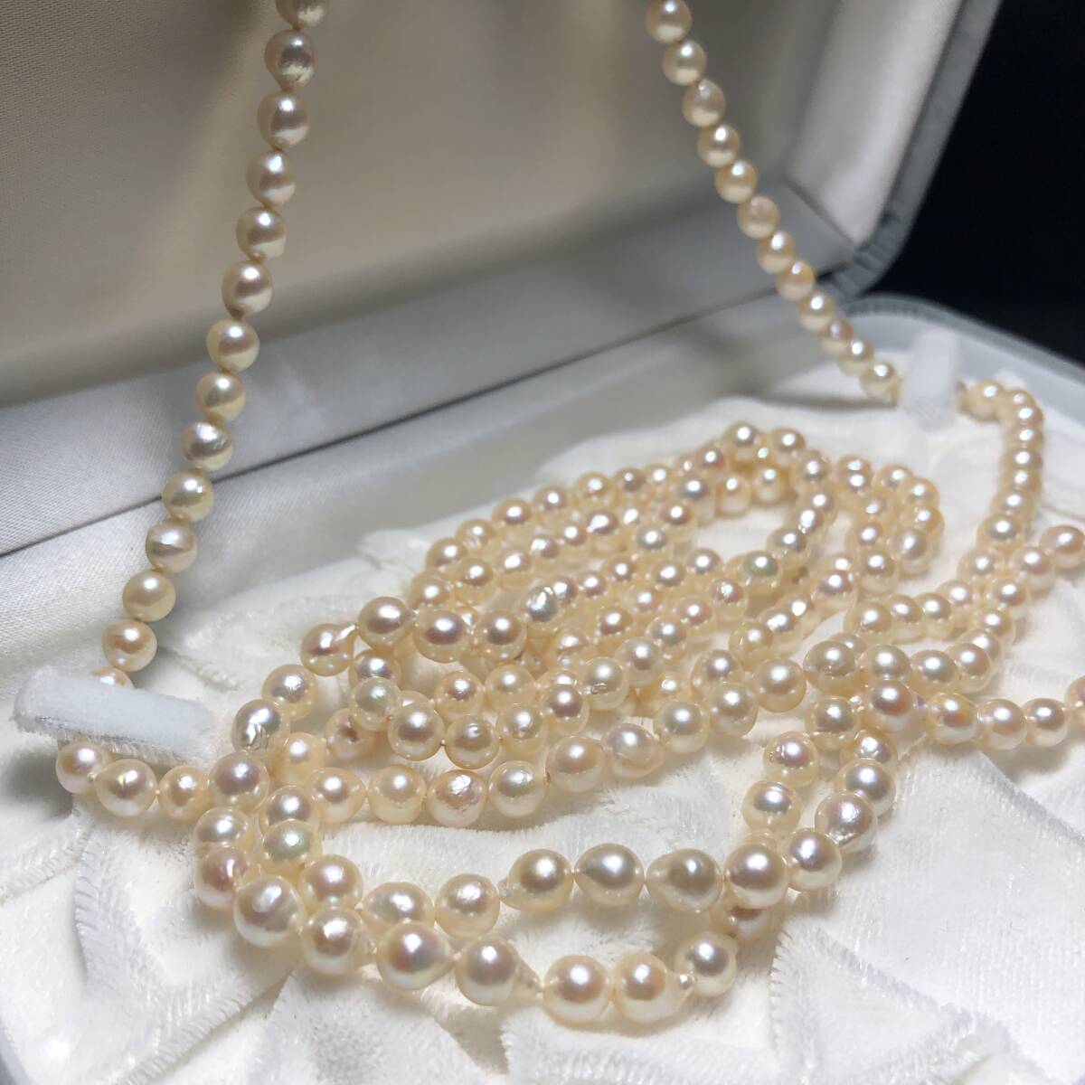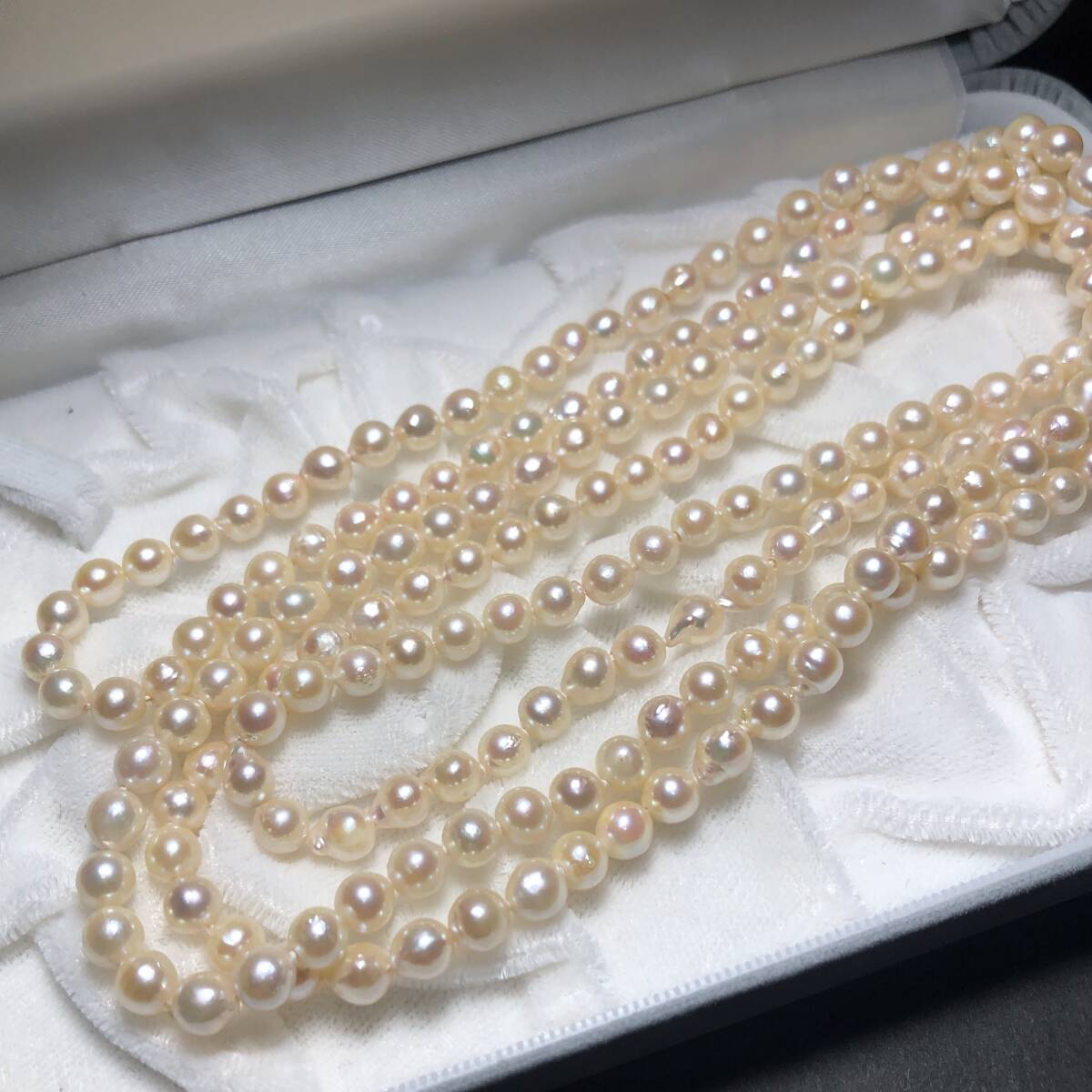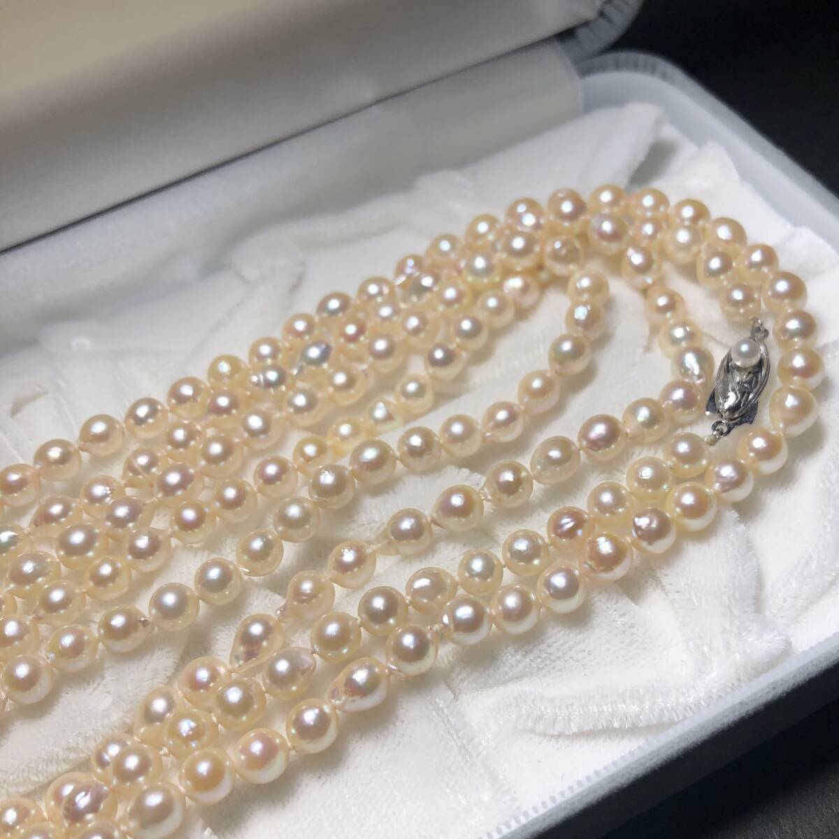 あこや真珠 超ロング パール ネックレス 約5.5-6.0mm シルバー金具 pearl jewelry necklace 約54g 約128cm 本真珠 アコヤ ジュエリー
