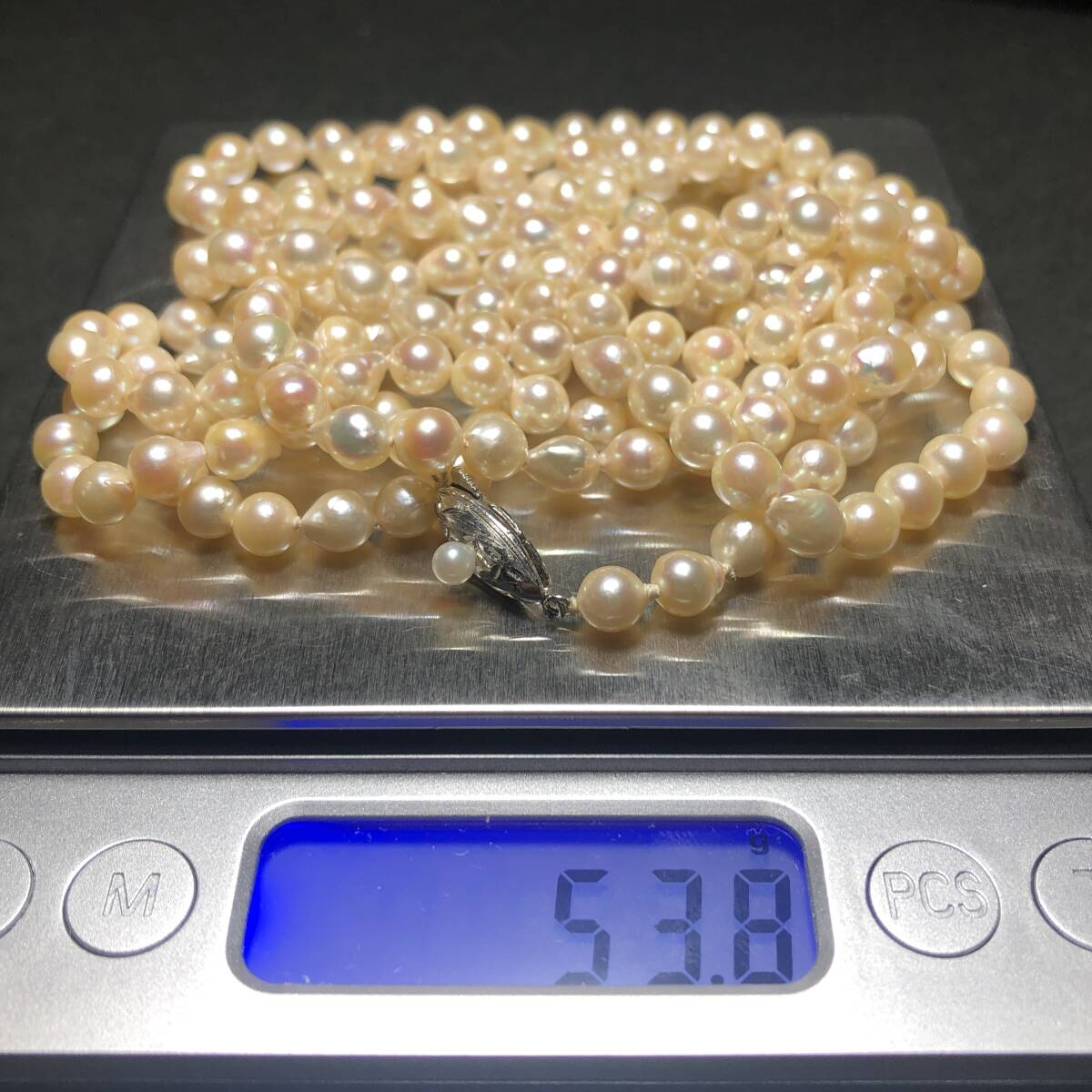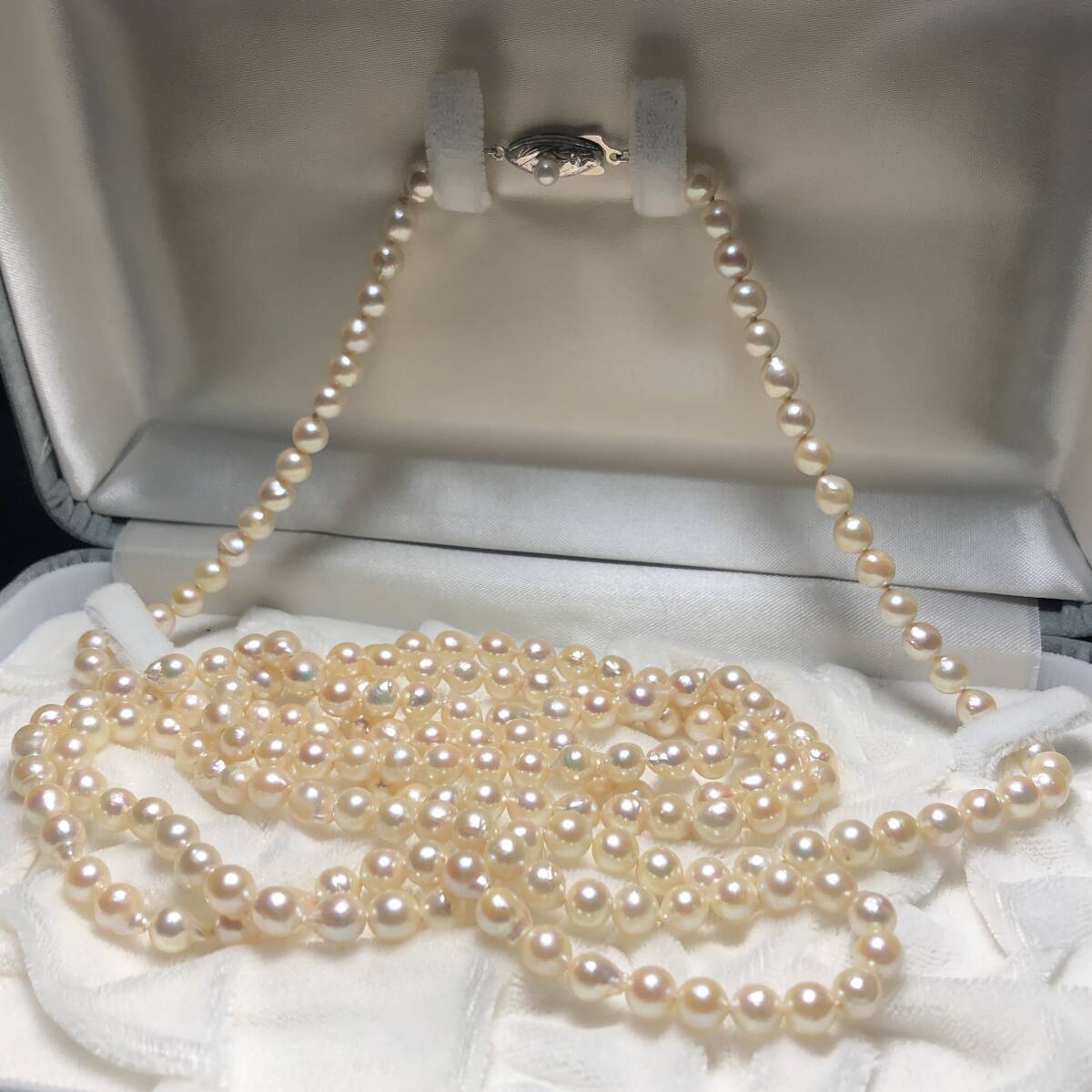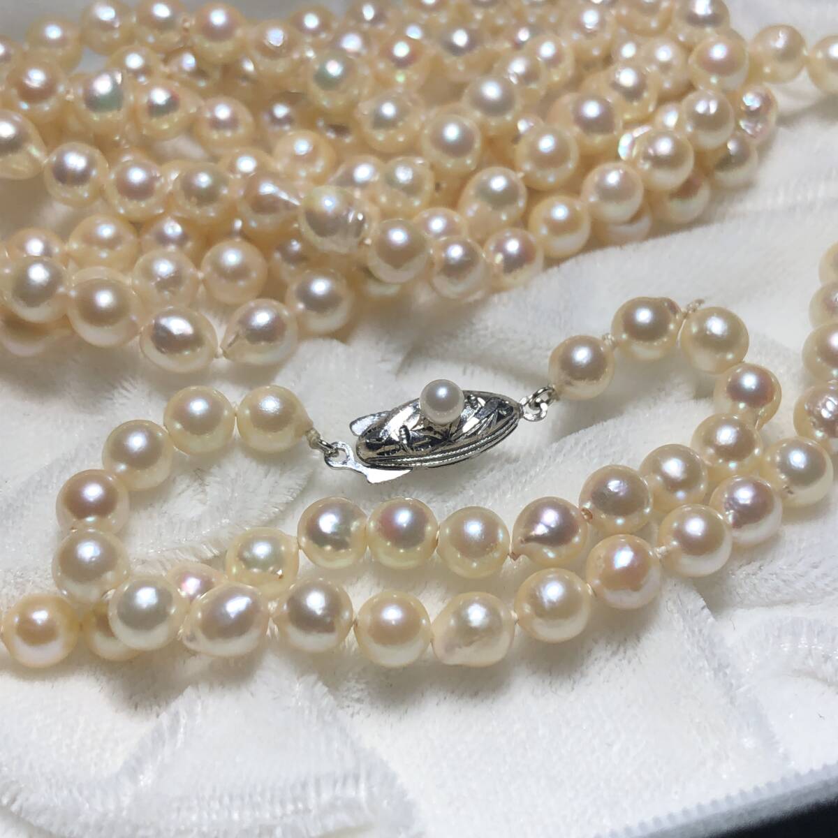 あこや真珠 超ロング パール ネックレス 約5.5-6.0mm シルバー金具 pearl jewelry necklace 約54g 約128cm 本真珠 アコヤ ジュエリー