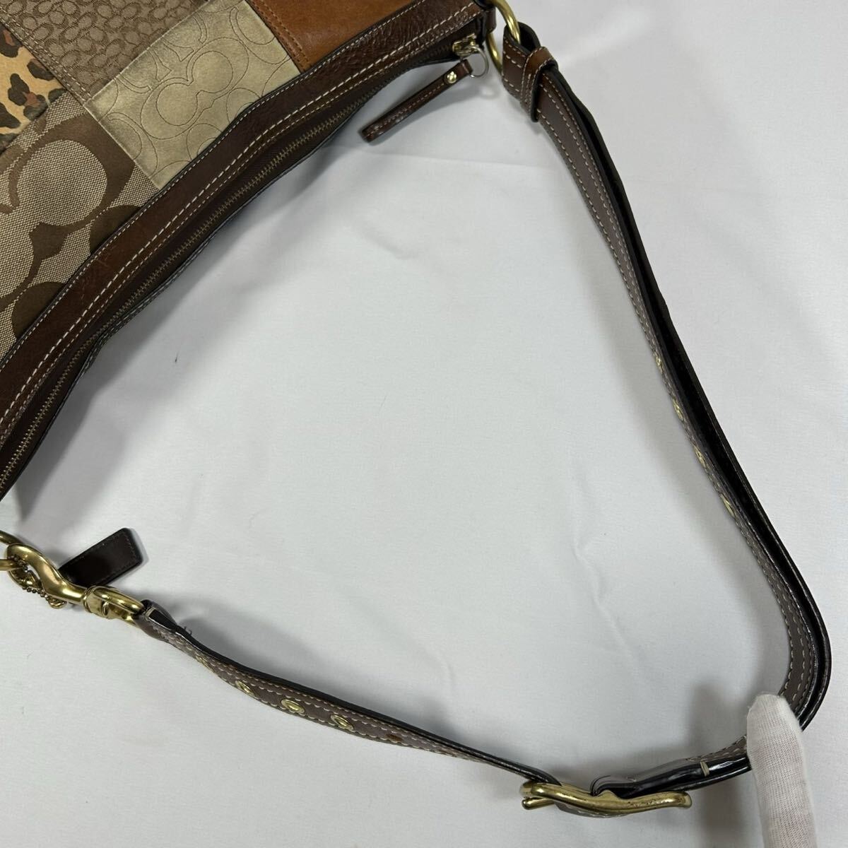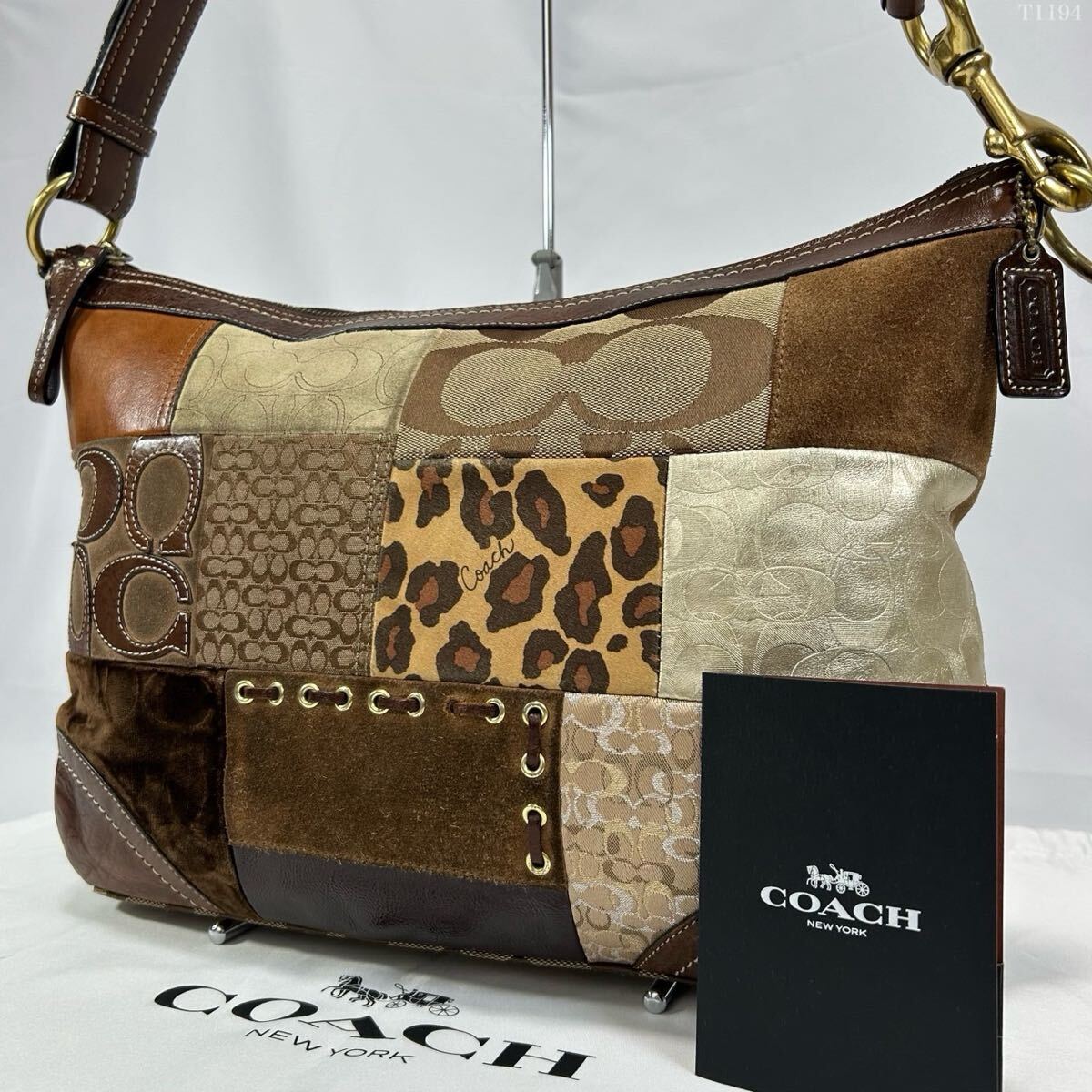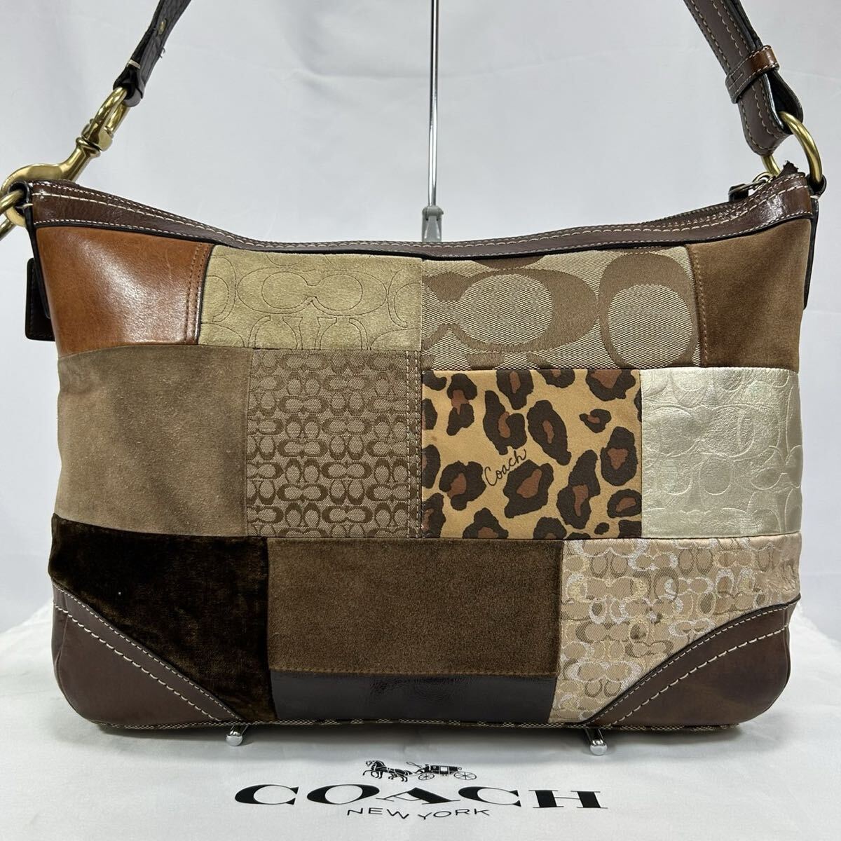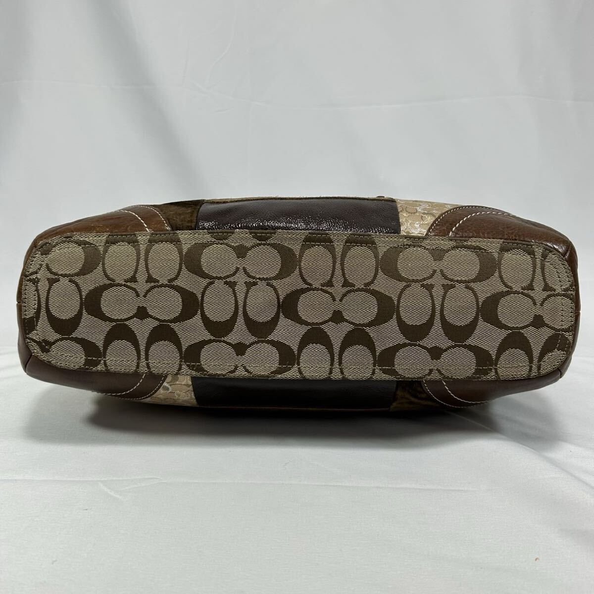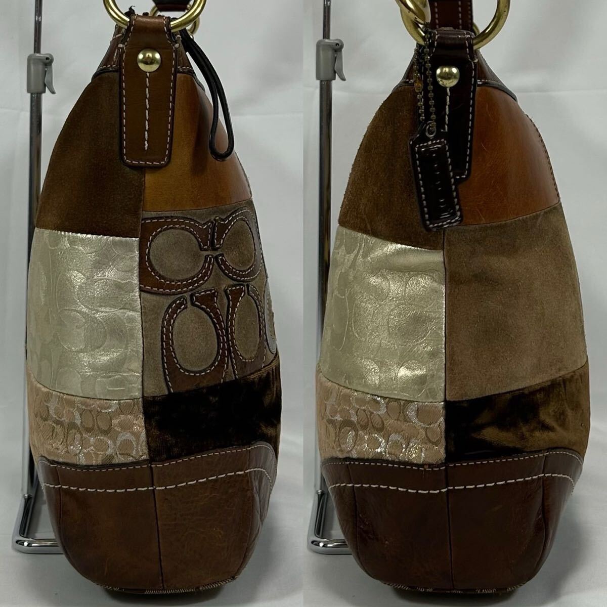 【入手困難/極美品】コーチ COACH ソーホー パッチワーク シグネチャー ワンハンドバッグ トートバッグ ワンショルダー 婦人鞄 ステッチ 茶